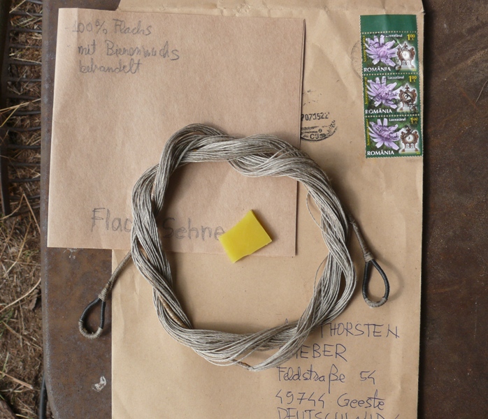 Ich bin wirklich positiv überrascht, dass die Flachssehne das aushält... zum Vergleich: die Natursehne (Hanf / Flachs ) ist mit 2,1 mm kaum dicker als meine 12 str. FF Sehne ( 1,9mm).