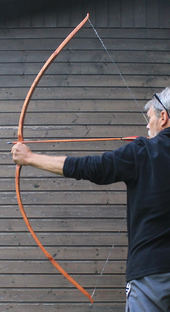 Ich finde den Bogen zwar optisch sehr gelungen, nur finde ich, dass er zu viel griffnah biegt, ich vermute auch, dass dieser Bogen nicht wahnsinnig schnell ist, da die äussere Hälfte des Biegebereichs zu massig ist.