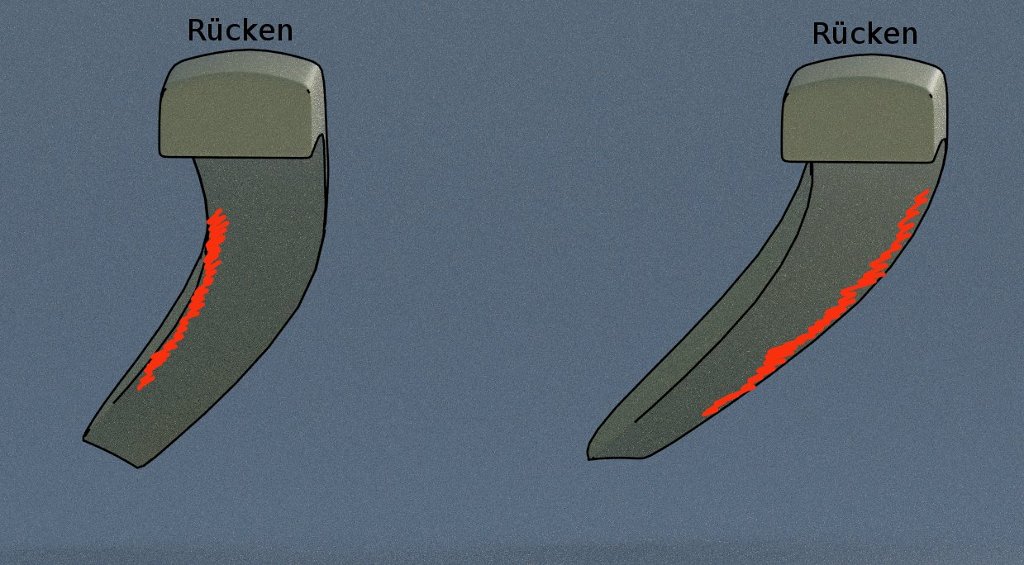 Wenn die linke Skizze für Krümmung ohne Verdrehung ist, dann muss genau auf der anderen Seite was weggenommen werden.