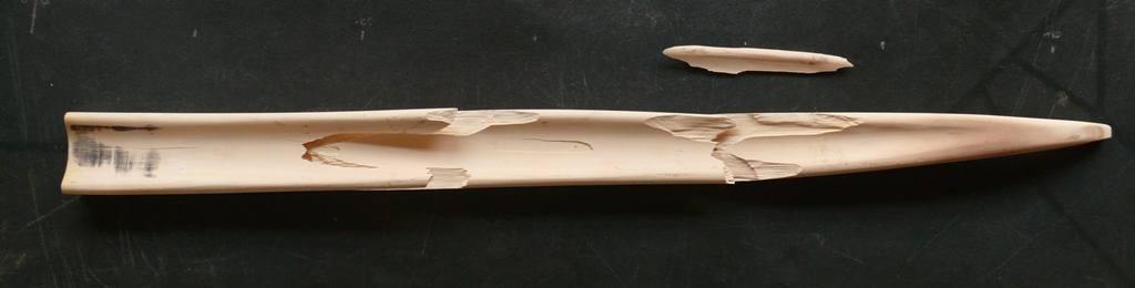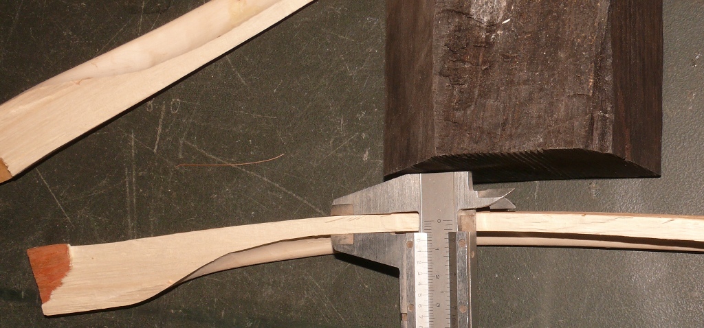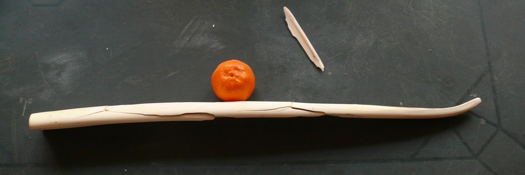 der erste Kandidat ist der Pfaffenhütchen - Bogen, der mir beim SapTurnier 2015 geplatzt ist - bzw. der übriggebliebene 2. Wurfarm davon: dann hab ich noch einen Versuch mit Hasel gestartet, der mir ebenfalls um die Ohren geflogen ist. Hier der (bis dahin überlebende) 2. Wurfarm:Die mögliche Biegung ist schon beachtlich...