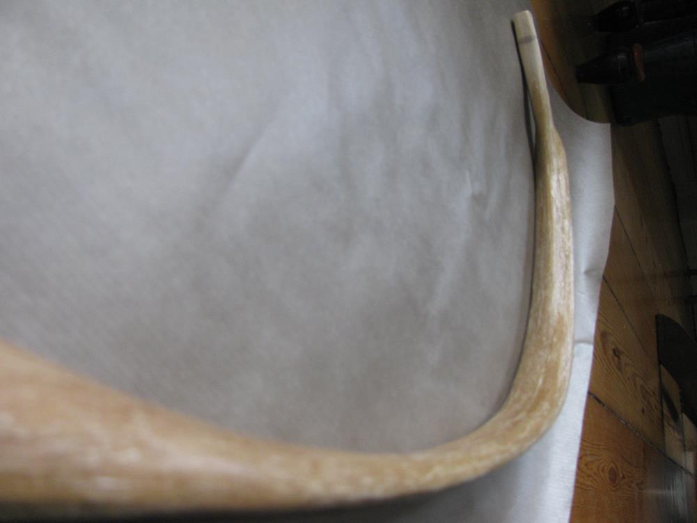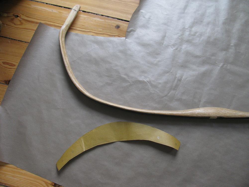 2. Bogen weiter trocknen lassen ! Karpowicz und viele andere geben viele Monate Trockenzeit an, obwohl der Sehnenbelag schon steinhart ist. Ich denke, die lange Trockenzeit ist nicht einfach aus dem Kaffeesatz gelesen sondern traditionell von Bogenbauern über Jahrhunderte angewandt, obwohl jeder ungeduldig auf den Bogen gewartet hat. Irgendetwas tut sich da wohl noch in der Schicht..