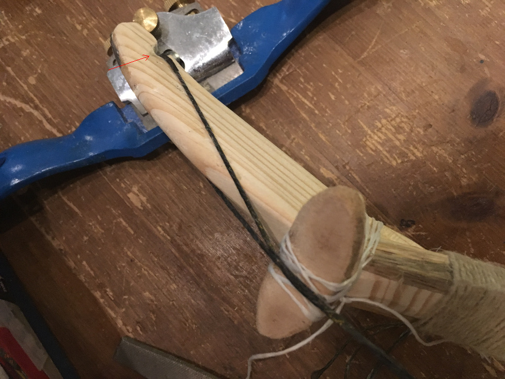 Endlich dazu ein wenig nach zu arbeiten. Keilförmiger machen hat viel gebracht, das hat das Geräusch schon deutlich reduziert. Dann habe ich mich noch hingesetzt und die Sehnenohren auf die richtige länge gebracht, so daß keine Drehung mehr den Winkel reduziert hat (Ging ja recht einfach da die Ohren nach koreanischen Vorbild nur angknotet sind, ?%&$§knoten btw). Ich glaube außer mir wäre das Geräusch ab dann vermutlich keinem mehr aufgefallen. Ganz weg bekommen habe ich es dann indem ich die Sehnenohren mit Kerzenwachs eingerieben habe.