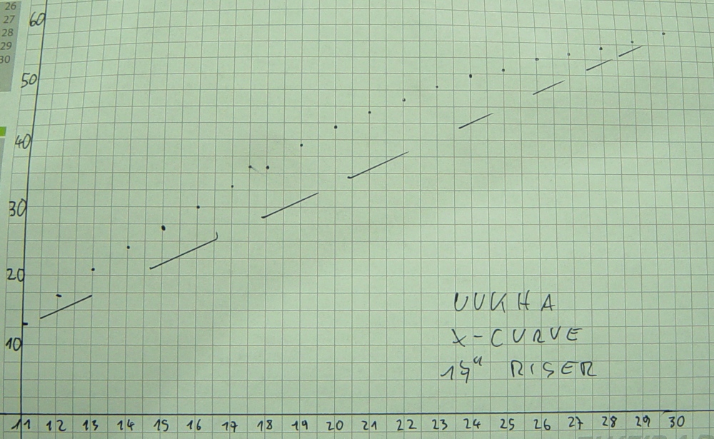 einfach nur so zur Anschauung, Auszugskurve Uukha X-Curve auf 17" Riser, die X-Curves haben auch arbeitende Recurves, wenn auch nicht so extrem wie der Covert Hunter.