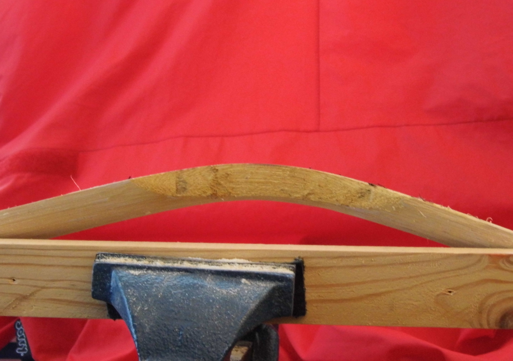 Achja, n Bild vom Griff: Zu sehen ist der Griff von der Seite. Der Bogenbauch ist oben, der Rücken unten, und ja, das sind knapp 30° Biegung.