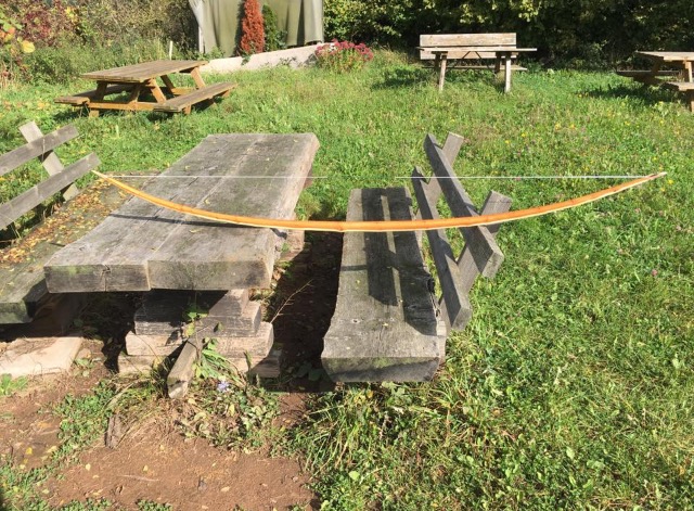 Interessant ist auch, daß, als zwischen Mitte der 90er bis ca. Mitte 2000 der 'warbow' hochoffiziell wiederentdeckt wurde, so ziemlich alle Neuzugänge in dem Resort anfingen, ihre Bögen kreisrund zu tillern, weil sie irgendwo etwas von 'full compass' gehört bzw. gelesen hatten. Einige Jahre später und um viele Erfahrungen reicher wechselten diejenigen jedoch fast allesamt auf elliptische Tiller - und die, die schon immer heavy bows schossen und bauten, haben die Bögen ebenso elliptisch getillert; jedenfalls is mir keiner bekannt, der das anders gehandhabt hätte.