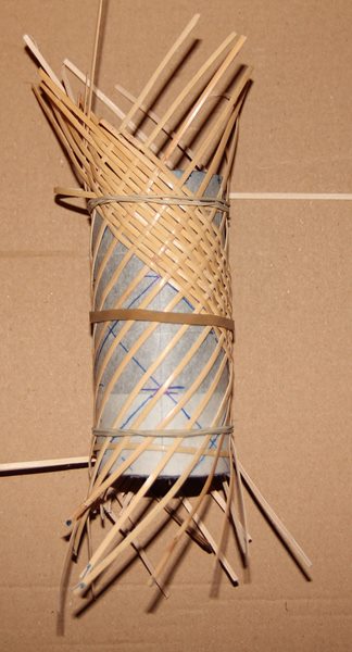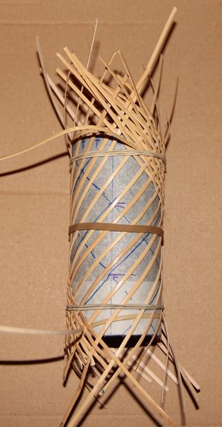 Als Basis nehme ich eine Röhre aus Papier - 5 cm im Durchmesser und 1 m lang. Diese Röhre wird mit Rattan umflochten( 2,25mm)