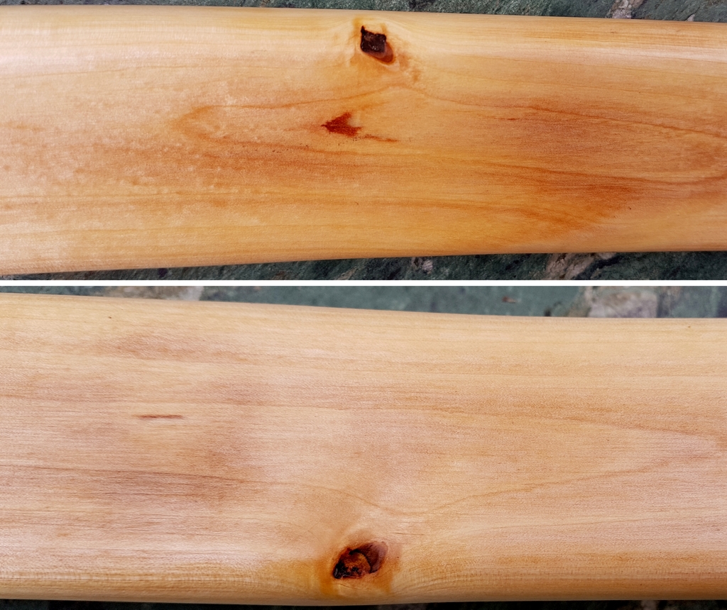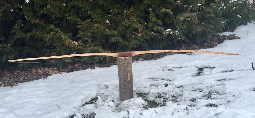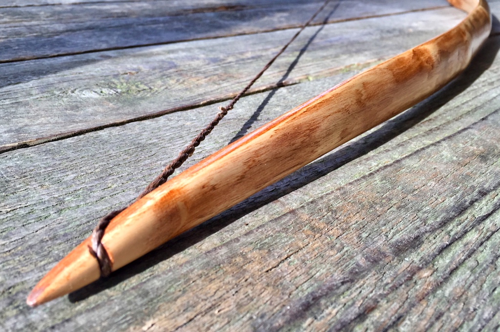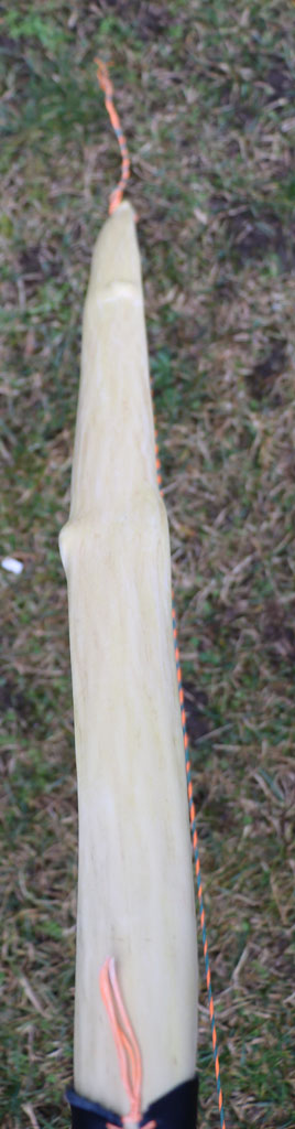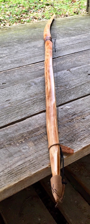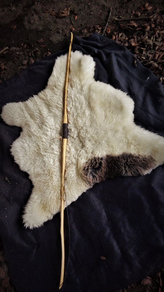 Ich wollte einen zweiten Bogen bauen, im Falle das es mit dem ersten Bogen nichts wird. Dazu habe ich einen Holler entdeckt, dessen Stamm vielversprechend aussah. Dieser Bogen ist aber aus dem Ast des Baumes. Er war krumm und es gab keine Alternative den Bogen anderst in den Ast rein zu legen.
