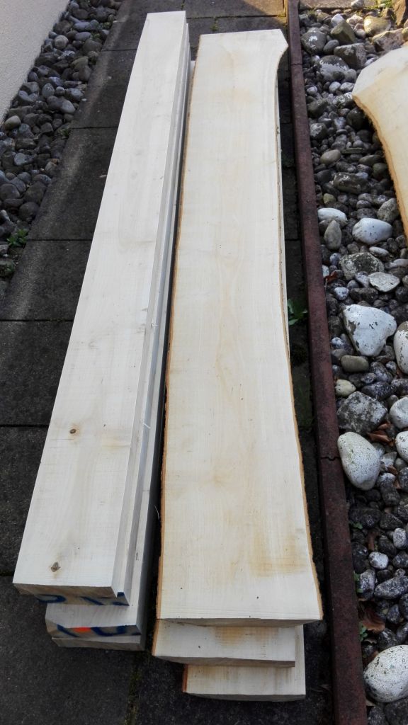 Ich hatte letzte Woche endlich meinen bestellten Spitzahorn von meinem Förster bekommen. 2,70m lang, 40cm Durchmesser und relativ gerade , ohne Drehwuchs und relativ Astfrei. Gestern war ihn aufschneiden und konnte ihn mir so schneiden lassen wie ich es wollte. Das gibt einige Rahmen für Komposits