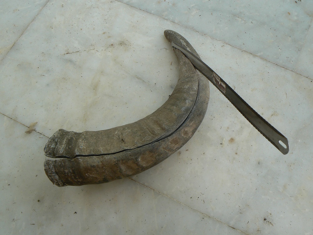 Außerdem konnte ich endlich zwei Wasserbüffelhorner (60cm lang) von der Schwäbischen Alb bekommen. Der Bulle ist 7 Jahre alt und wurde letzte Woche geschlachtet. Über die Qualität werde ich berichten , wenn sie da sind. Auf den Bildern sieht es zumindest gut