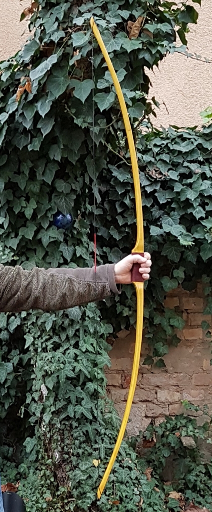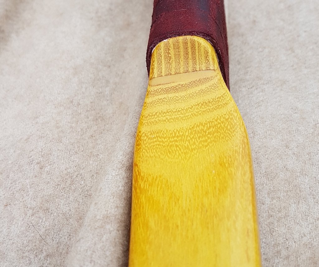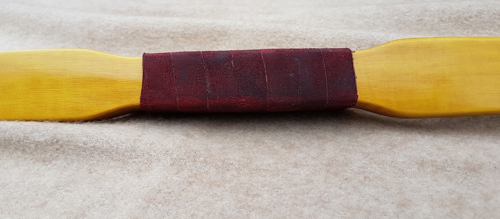 Der Bogen wurde zuerst geölt, dann mit Schellack-Benzoe-Mix überzogen und zum Schluss mit meinem Wachs-Harz-Mix (Biene, Carnauba, Dammar) poliert. Das ist dann nahezu wasserdicht.