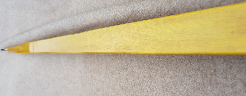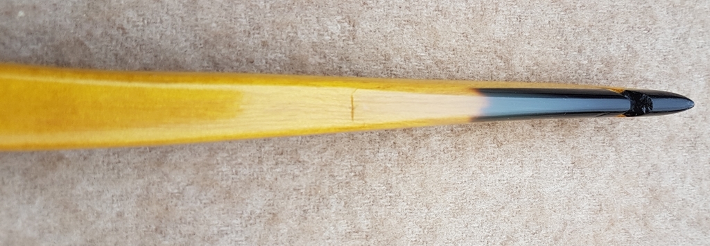 Die Billets lagen seit 2014 rum, irgendwann 2016 hab ich Billets abgespalten, weil das Holz sehr dick war und ich glaube 2017 habe ich die dickeren Billets mit V-Spleiß verklebt. Dann irgendwann dieses Jahr habe ich etwas lustlos daran rumgeschnippelt und ich glaube vor 2-3 Wochen entschieden, dass der Bogen noch 2018 fertig werden soll.
