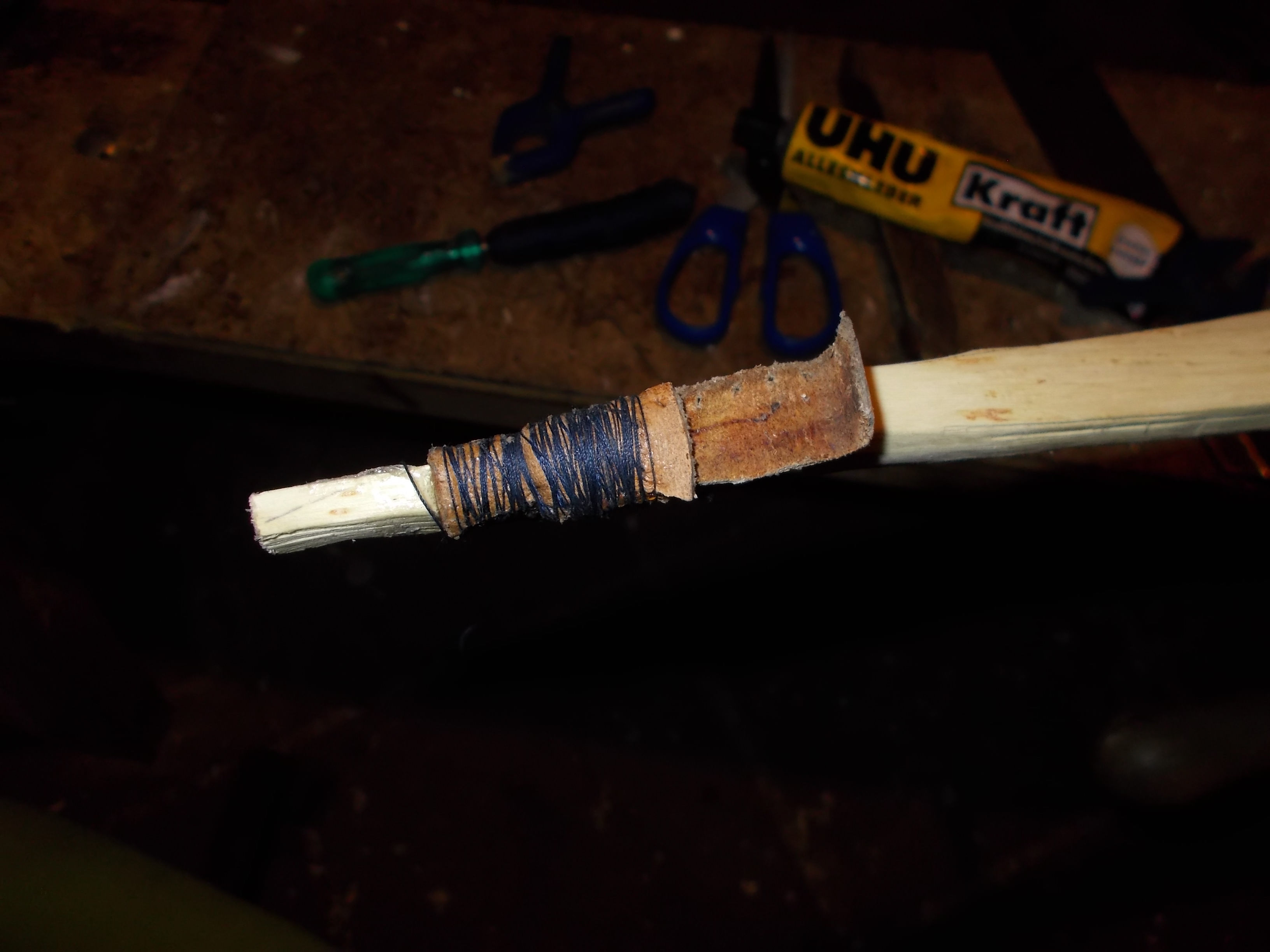 Auf eine Griffwicklung hab ich bewußt verzichtet, weil ich es halt schlicht mag,gehalten wird er oberhalb