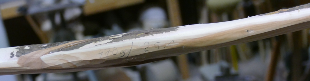 weiter gehts...ich hab die schnittflächen auf dem Bandschleifer nochmals im Winkel angepasst und plangeschliffen. Zwischen die Flächen kommt eine Leiste aus Pflaumenholz (Restekiste), um den Griff ein wenig zu verstärken.das Ganze geklebt mit 5-Minuten-EpoxiSehnenlage passt.Bauchansichtund das Stöchchen noch ein bisschen mit dem Ziehmesser bearbeitet