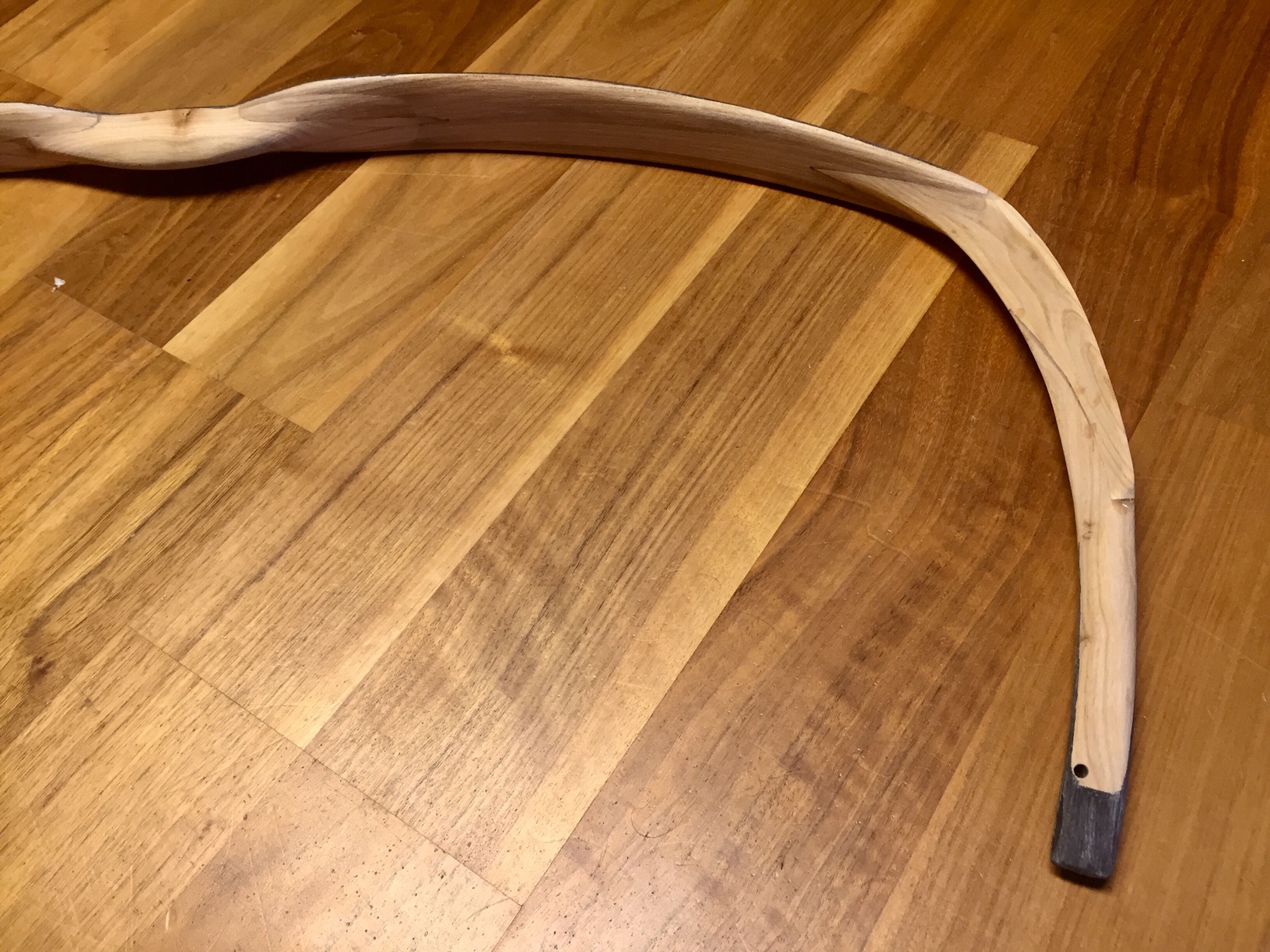 Die Instabilität des Bogens hat durch die zusätzliche Trockenzeit tatsächlich abgenommen und die Risse im Horn sind durch den Tillervorgang veschwunden. Ich schieße den Bogen mittlerweile regelmäßig.