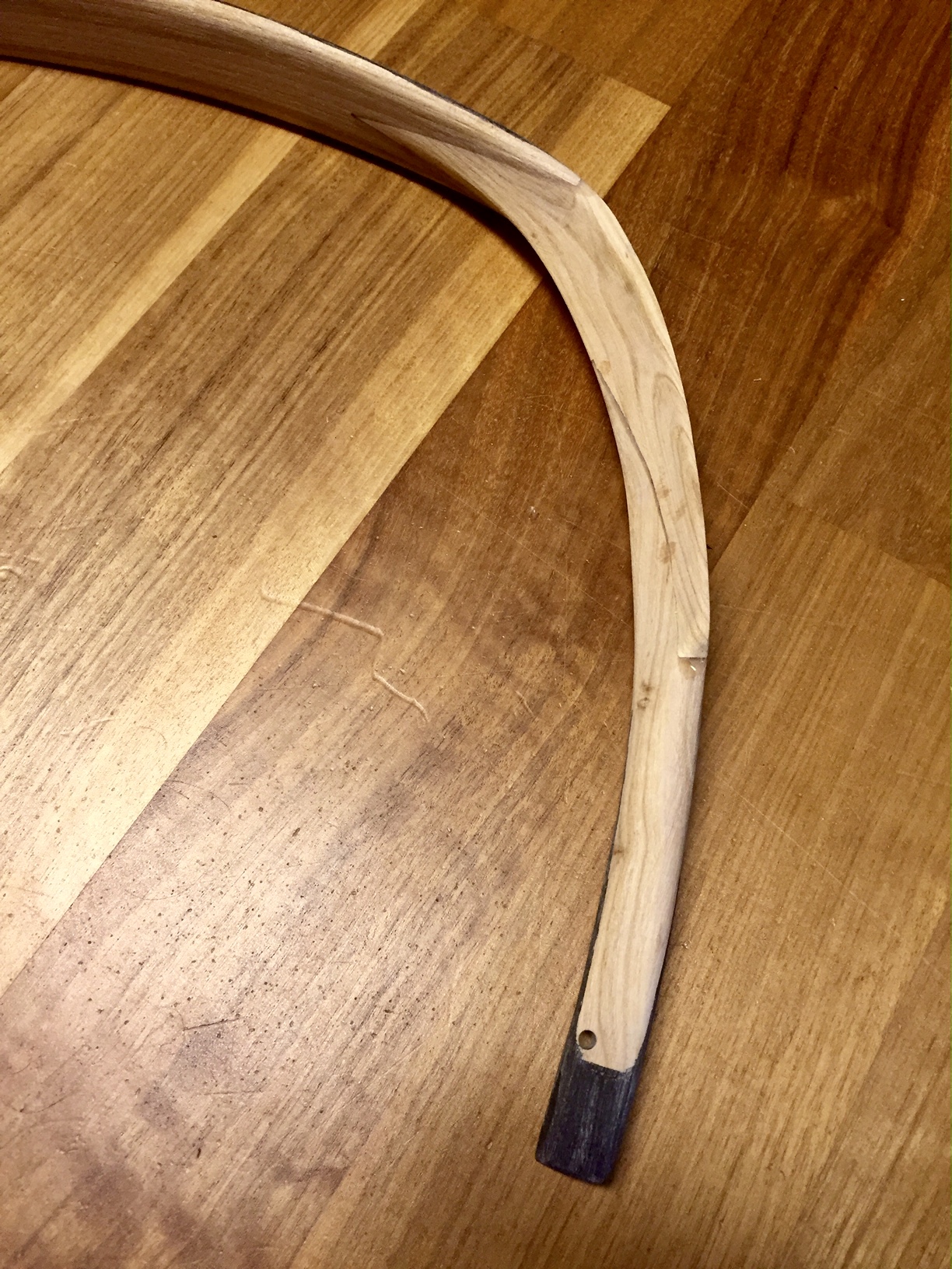 Auf der Oberfläche des Horns befindet sich noch ein kleiner Rest der früheren Außenseite des Horns. Die Stelle befindet sich im biegenden Bereich und ich bin mir nicht sicher, ob sie beim Tillern verschwindet. Könnte das später Probleme geben, oder ist das zu vernachlässigen ?