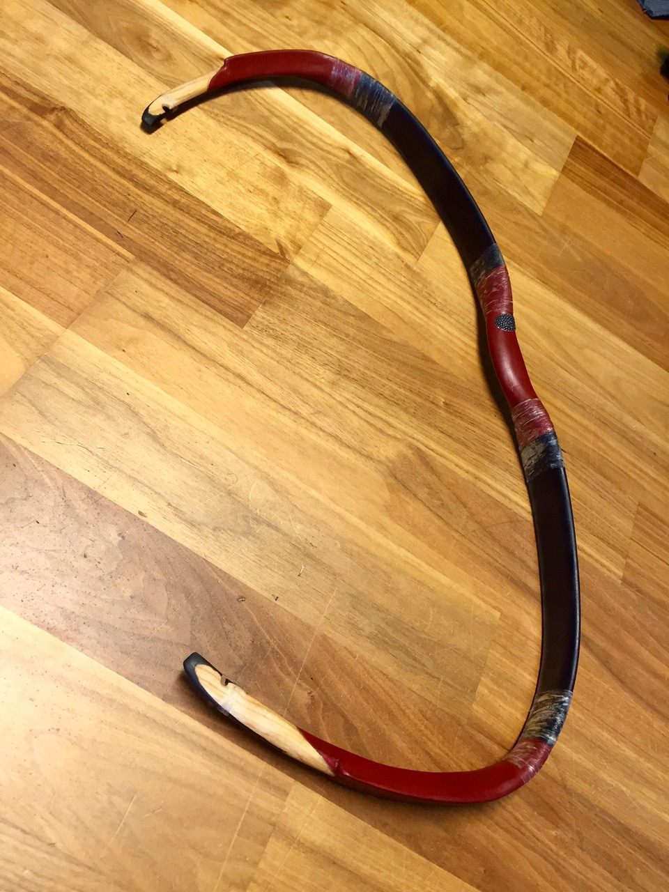 Nun zu meiner Frage: Der Bogen ist immer noch extrem instabil sobald die Sehne von den Siyahs abhebt. Aus diesem Grund kann ich den Bogen nur am Spannbrett ausziehen. Gibt es irgendwas, was man dagegen machen kann? Hilft es die Kanten zusätzlich mit Sehne zu verstärken und so dem Bogen mehr Stabilität zu verleihen?