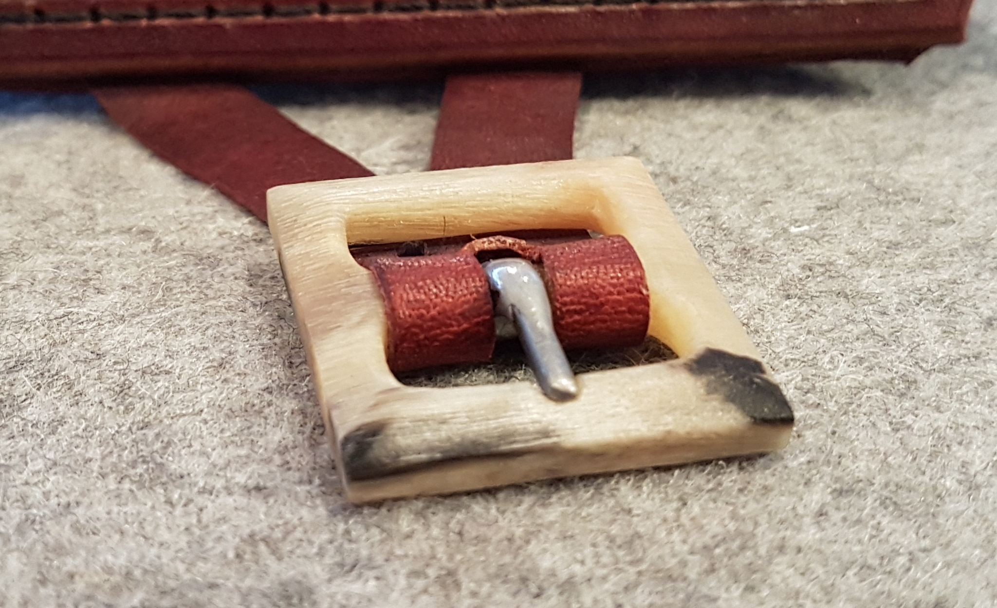 Die Schließe ist aus Schafhorn und nicht so plump wie beim ersten Versuch, sondern deutlich kantiger und etwas schlanker bez. der Materialstärke.