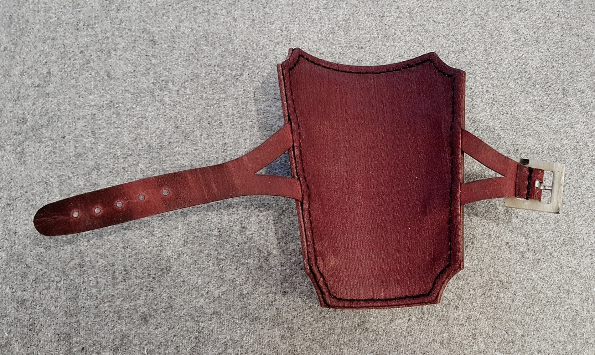 Eine verstellbare Tragekonstruktion ist für mich noch zu schwierig in der Herstellung, ich hab schon bei der Verschnürung des Bodens mit dem Oberteil eine Nervenkrise bekommen, es hat dann aber mit nur einem durchgehenden Lederriemen geklappt.