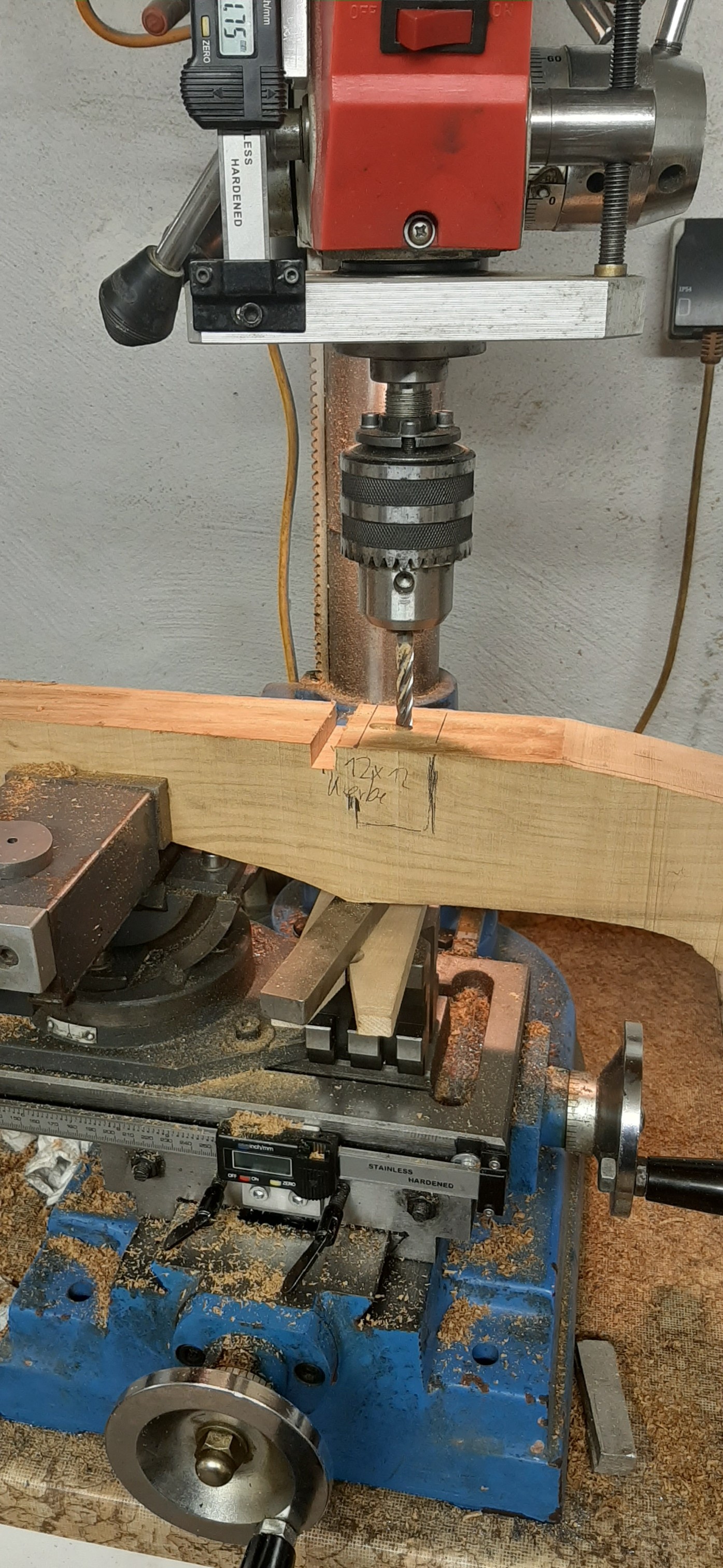 Heute ganz früh angefangen. War eine wahnsinns Arbeit bis das Stechschloss eingearbeitet war. Dann noch Anpassungsarbeiten bis es auch die Klappe auslöst. Beim Bogenfenster ausarbeiten ist etwas Holz abgeplatzt. Aber ist ja noch genug Material bzw. Aufmass vorhanden. An die Fertigstellung der Säule geht es erst wenn das "Klotz" Schiesst.