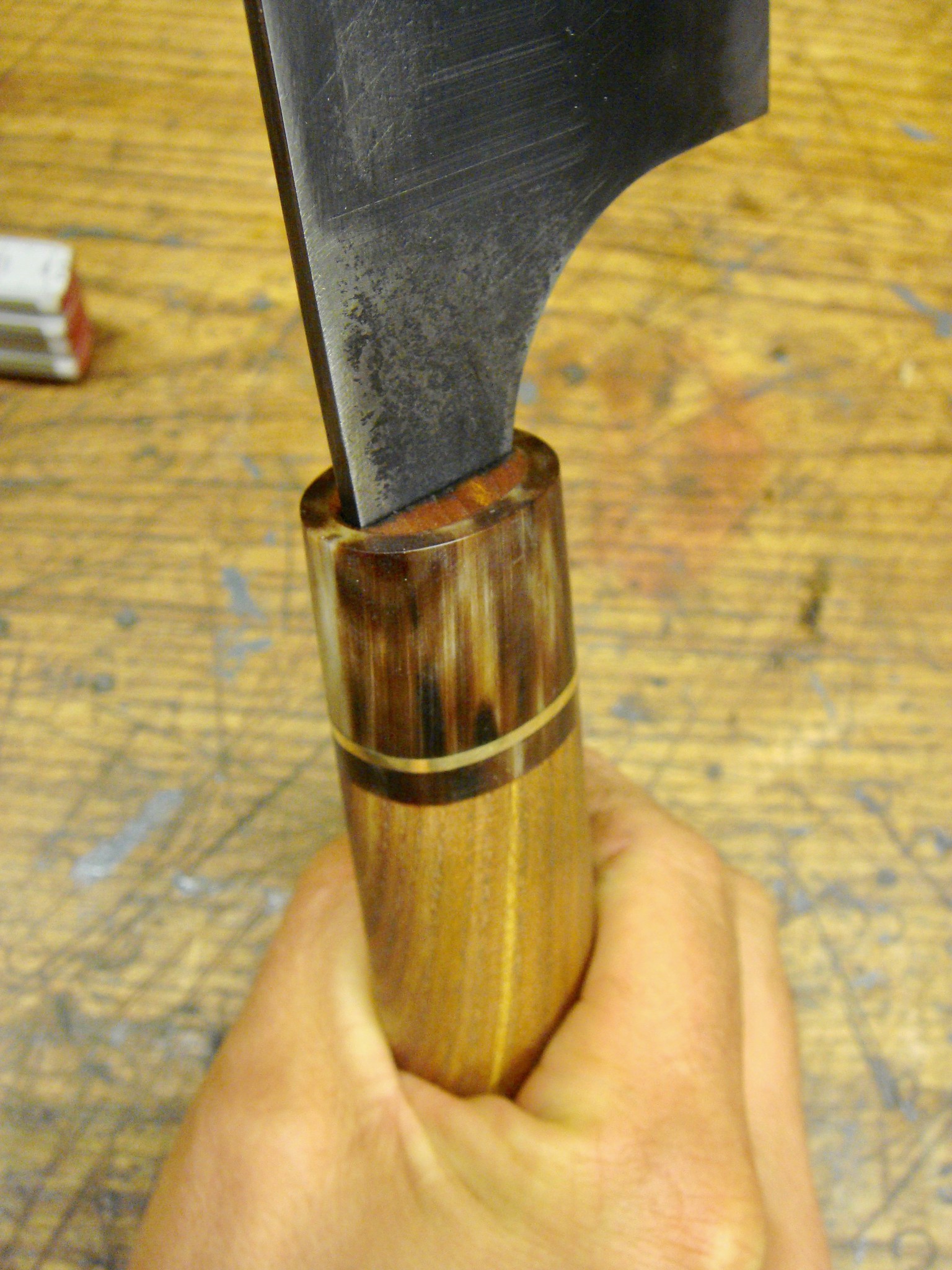 Das "Düstere" ist übrigens Schnellbrünierung. Ich fand es macht sich ganz gut auf der Klinge, neben Ebenholz und zundriger Zwinge.