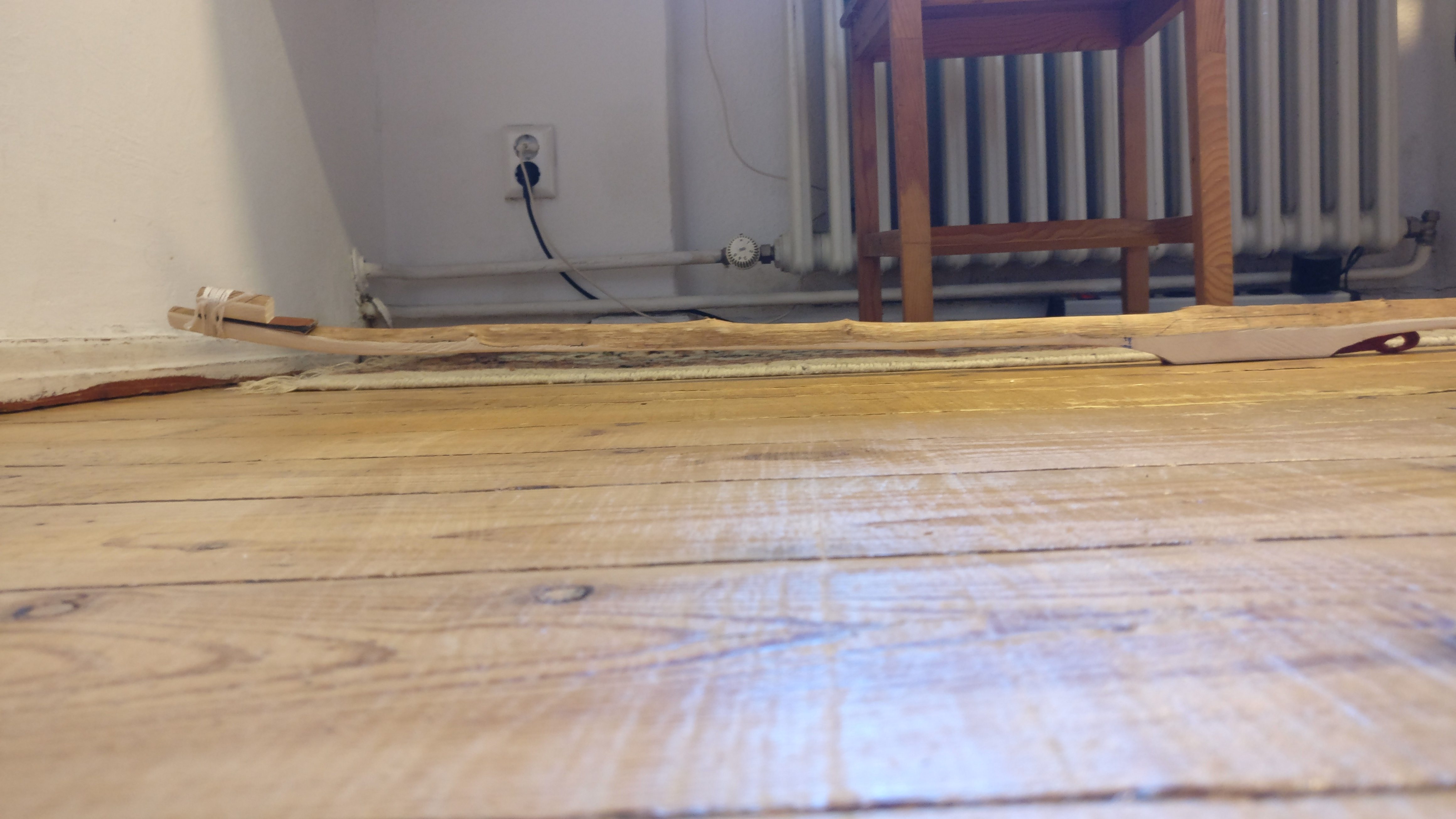 Stand: Ich habe versucht einen Bodentiller durchzuführen, bin damit jetzt zufrieden und baue gerade an einem Tillerstock und warte auf das bestellte Sehnengarn um mir eine Tillersehne zu bauen.)