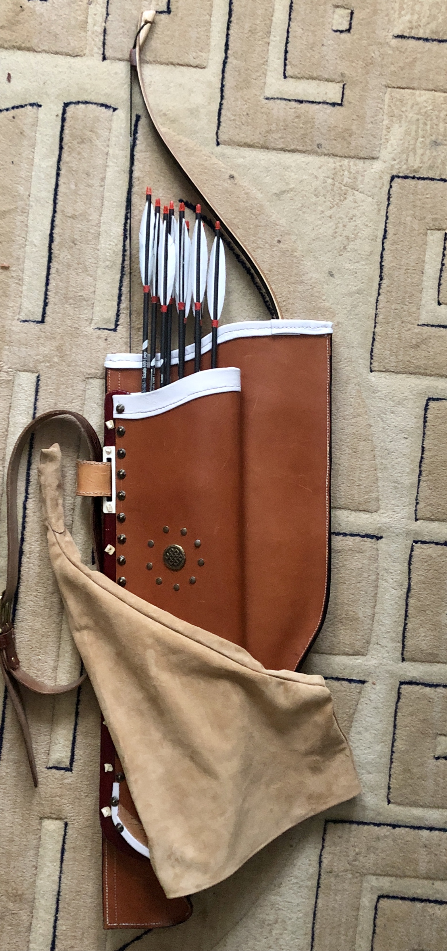 Den Pfeilköcher habe ich mit asiatischen Rohhautknoten am Bogenköcher befestigt.