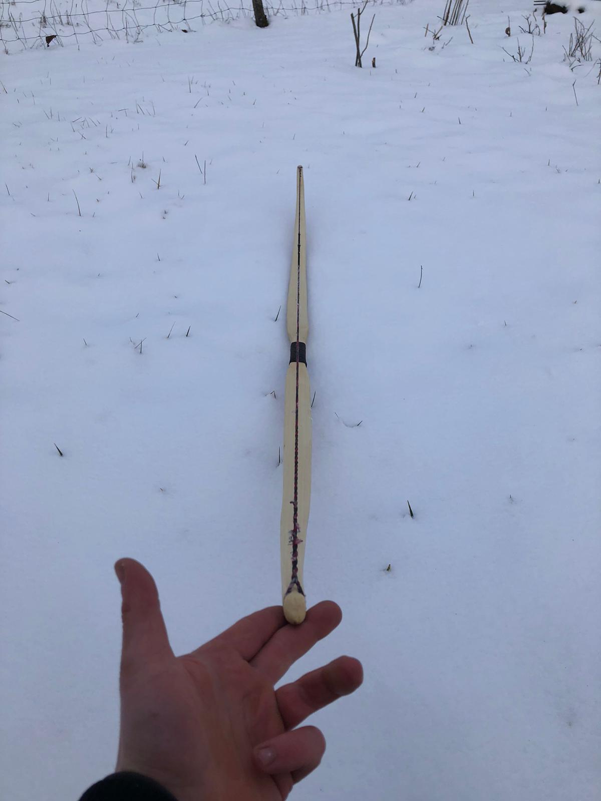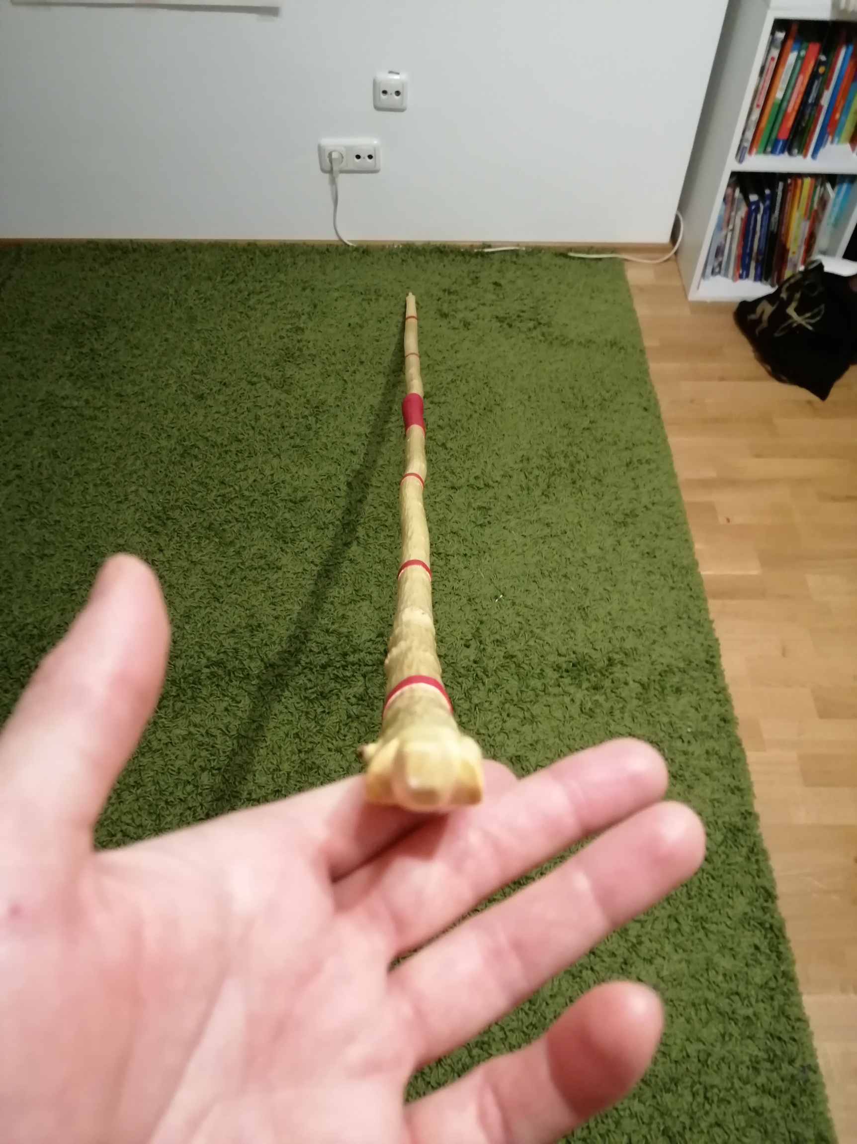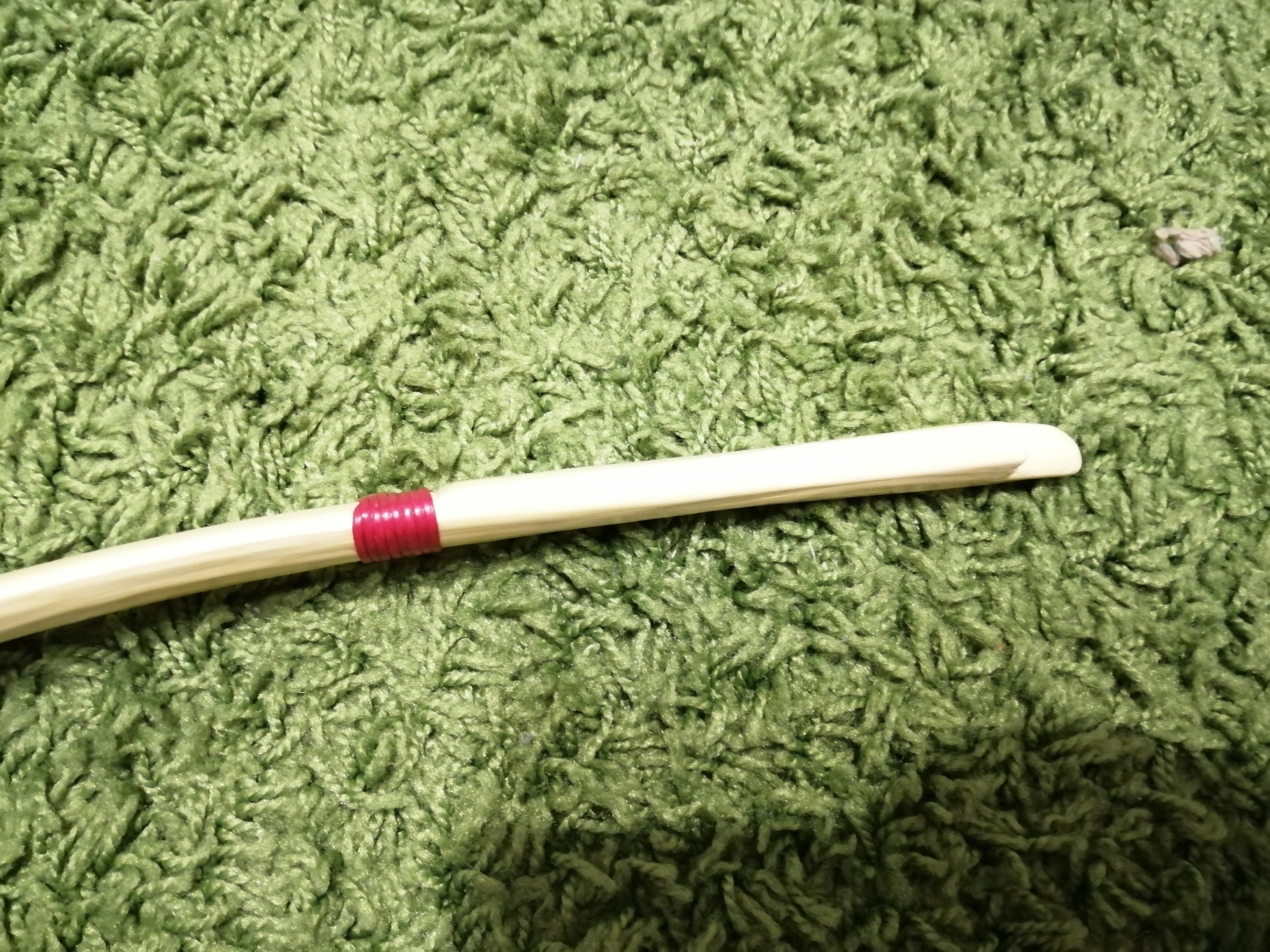 Macht mit Daumen richtig Laune und wirft auch schwere Pfeile überraschend schnell und ohne Handschock. Die Japaner wussten schon, was sie an dem Design haben. 2 Dinge, die mich einfach freuen: erstens dieser perfekte Rohling - sowas findest du einmal in ein paar Jahren. Zweitens das Pfaffenhütchen an sich - immer wieder schön, wie lebendig und schwingfreudig das Holz ist. Dagegen wirkt die Kornelle wie ein Nudelholz.