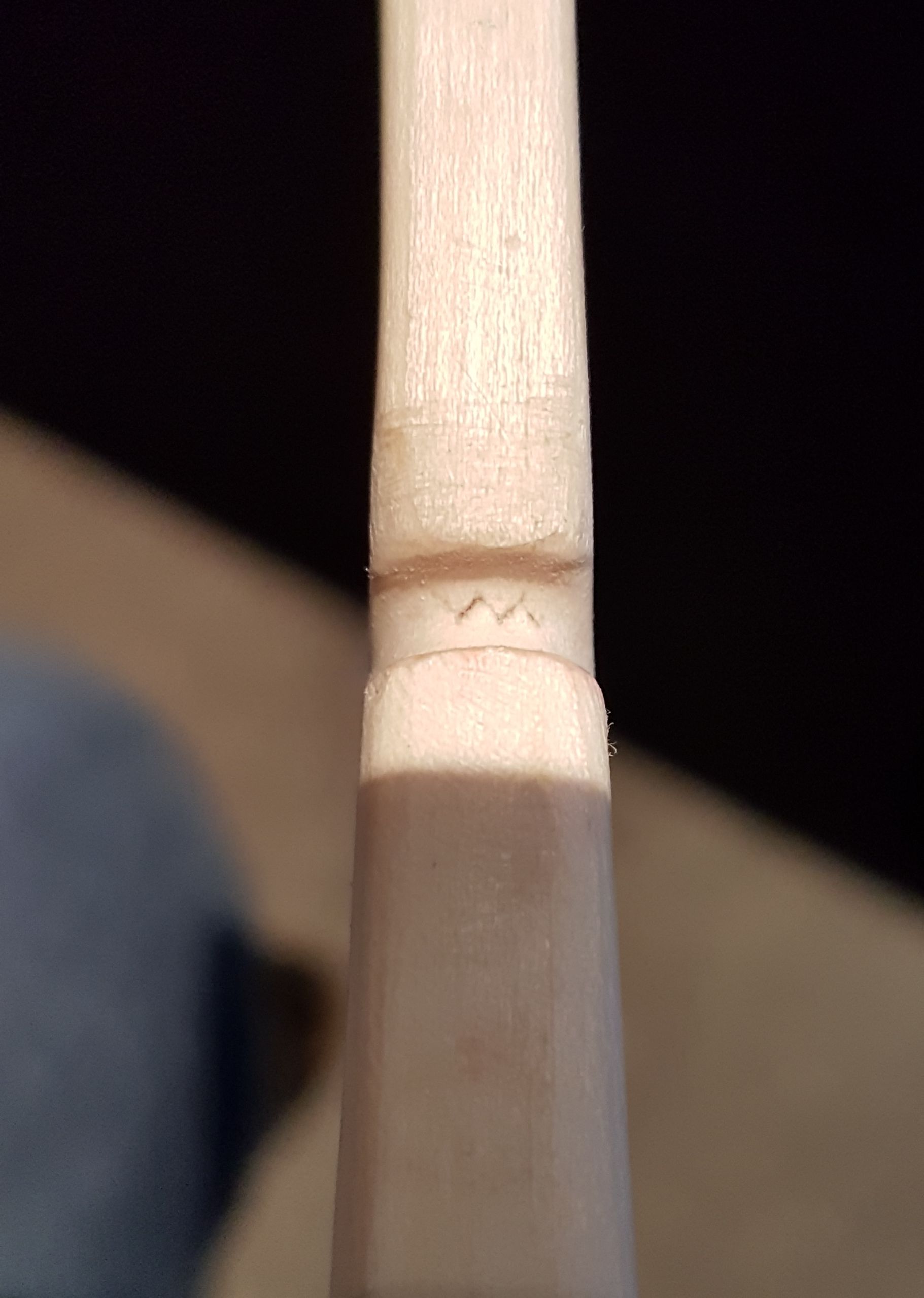 Ein fast passender Keil lag noch in meiner Grabbelkiste. Weil's draußen schon zu dunkel war, hab ich mich für Handschliff entschieden, der Keil war deutlich zu dick.