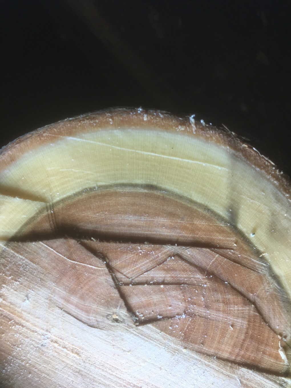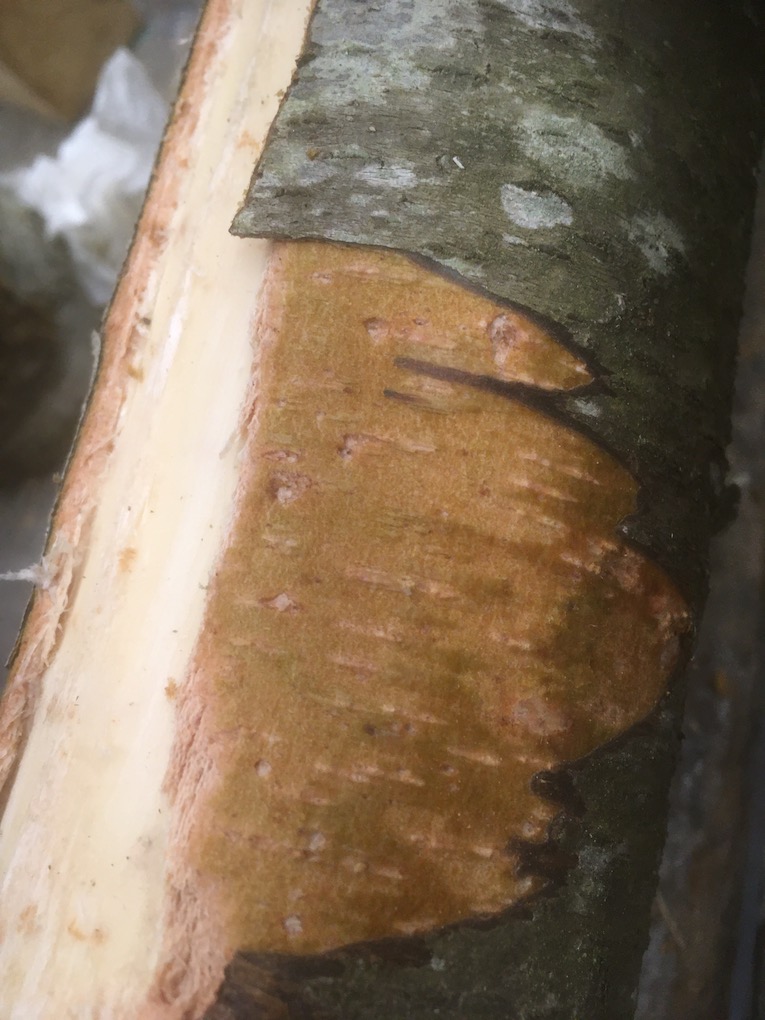 Hoffe, die Fotos sind für den Zweck gut genug. Rinde Rinde und das direkt darunter. Frisch geschnitten 15 Min. später wurde es sehr braun