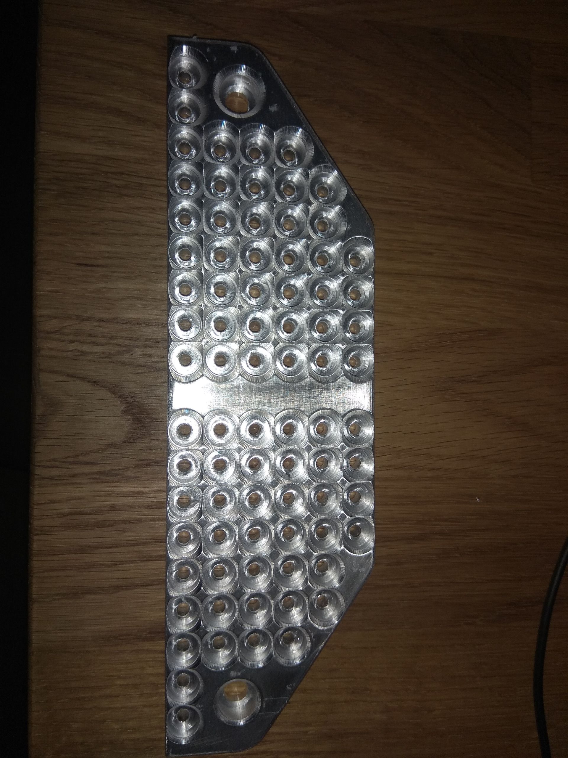 Nachdem ich bis jetzt mit einem Feilbock aus Holz und Spaxschrauben als Anschlag gearbeitet habe, habe ich mir mal was stabiles gebaut. Ich hatte noch ein paar Reste 40x40er Aluminiumprofil die ich entsprechend der Holzkonstruktion zusammen geschraubt habe. Als Anschlag / Lehre hab ich ein Stück 10mm Aluminium mit 80 Gewinden und Sacklöchern gemacht, die dann mit Nutensteinen auf den Aluprofilen verschraubt wird.