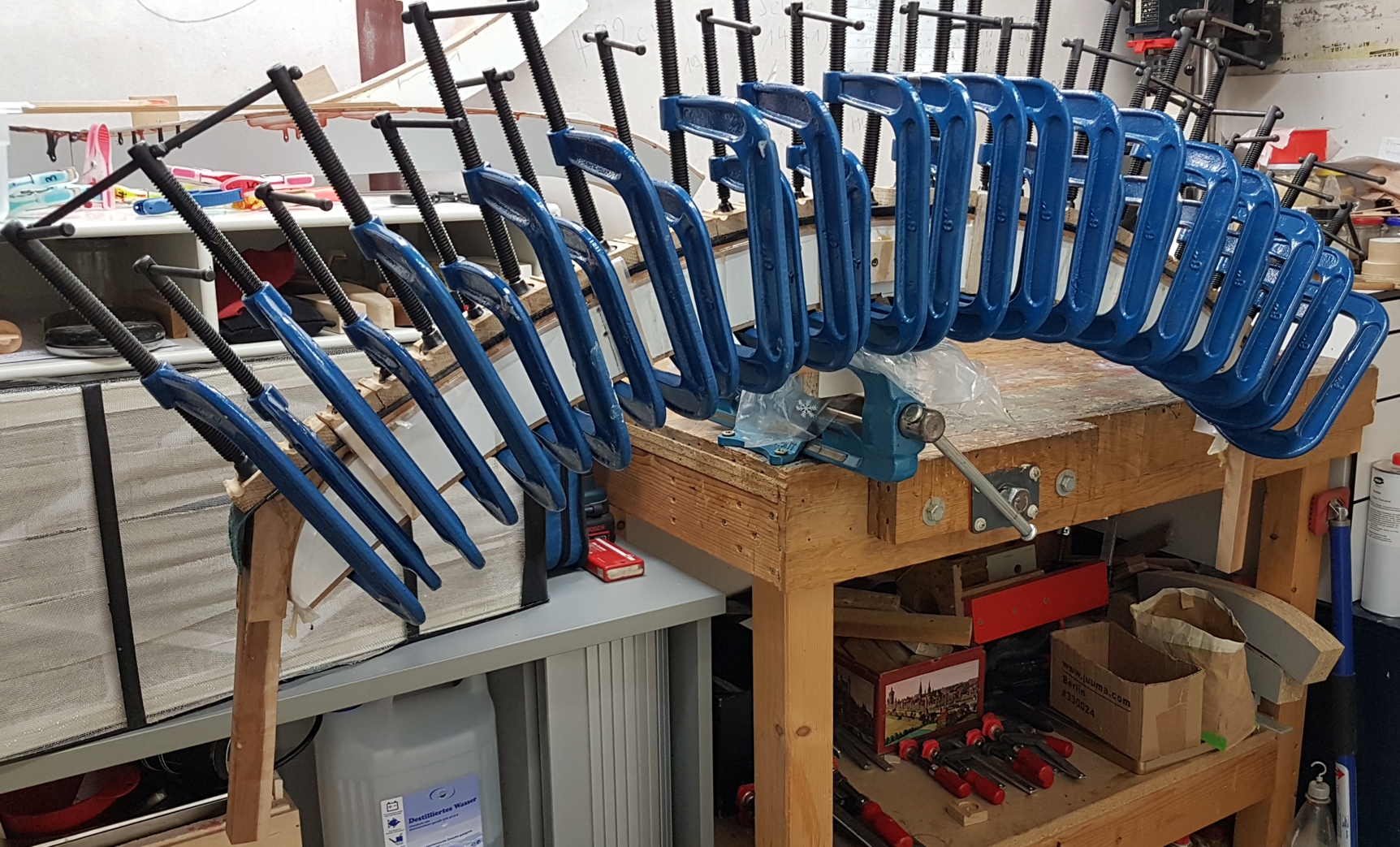 Jetzt heißt es wieder einmal abwarten. In 2-3 Tagen werden die Zwingen entfernt und dann darf das Ganze 3-4 Wochen trocknen.