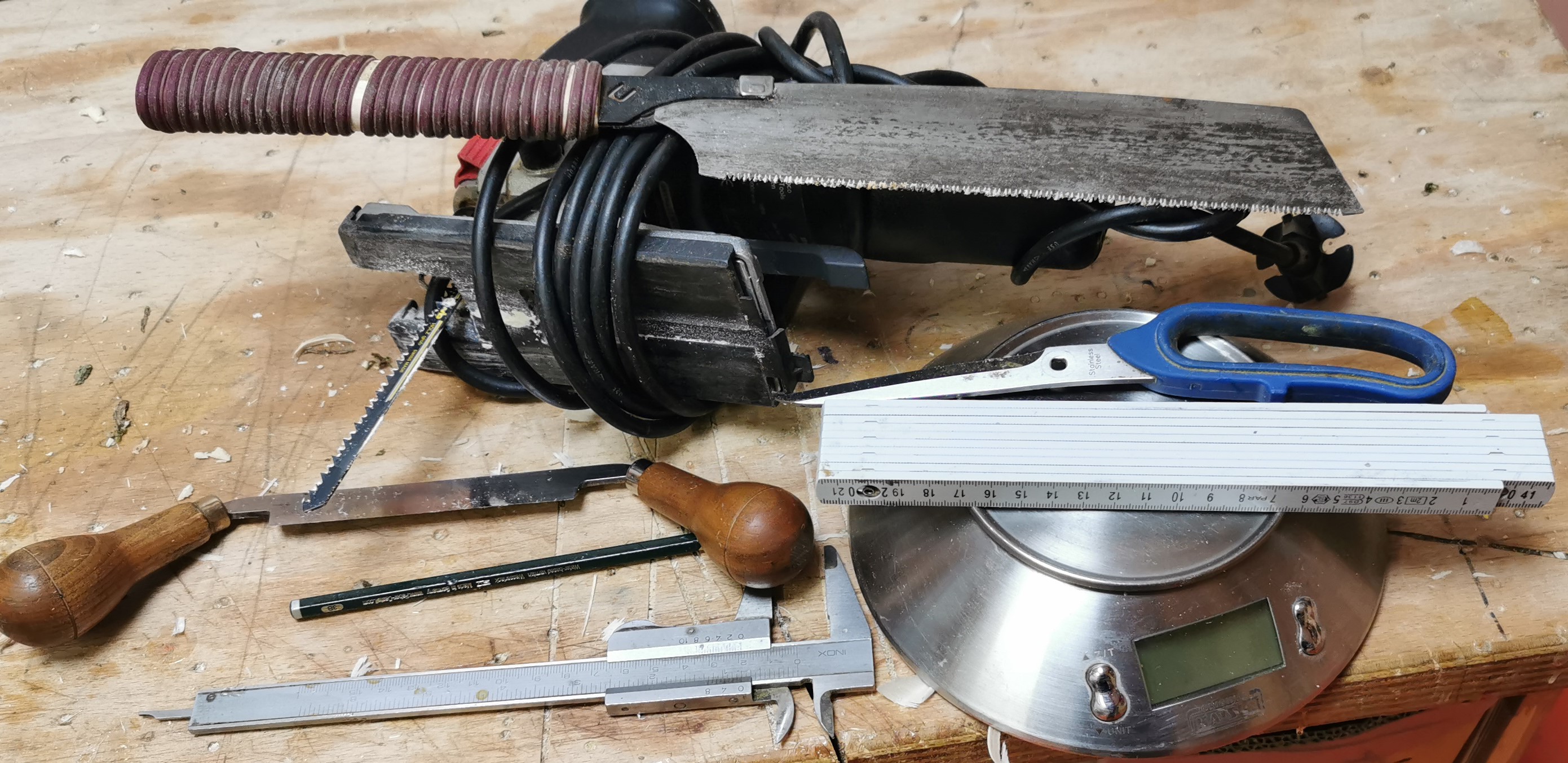 Den Stabbogen habe ich inzwischen bereits relativ weit getillert, und danach relativ sanft wärmebehandelt, die 24 Stunden vorher hat er noch knapp 3% Gewichtsverlust gehabt. Jetzt hat er noch 388 Gramm, jetzt darf er bis zum Abend ruhen, dann werde ich den Tiller nacharbeiten, der hat sich durchs Erhitzen etwas verändert.