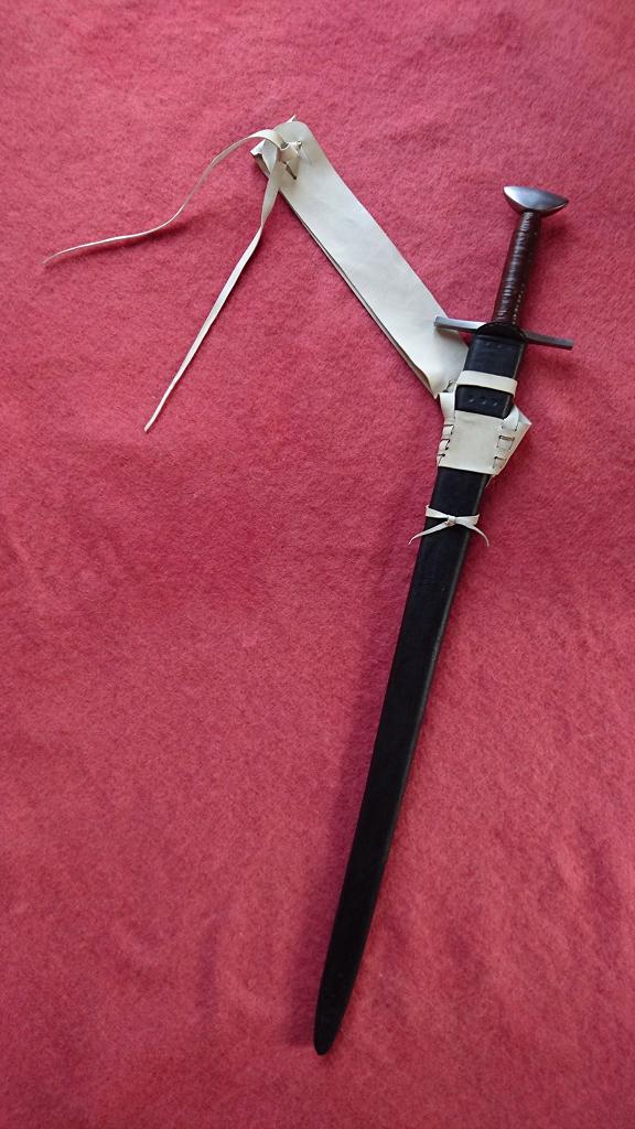 Vor allem mal ein Schwertgehänge ohne Nieten und Metallbeschläge sondern nur gewickelt und geknotet. Hat mich einiges an Nerven gekostet bis das alles passte, aber hält wenn man es mal raus hat bombenfest.