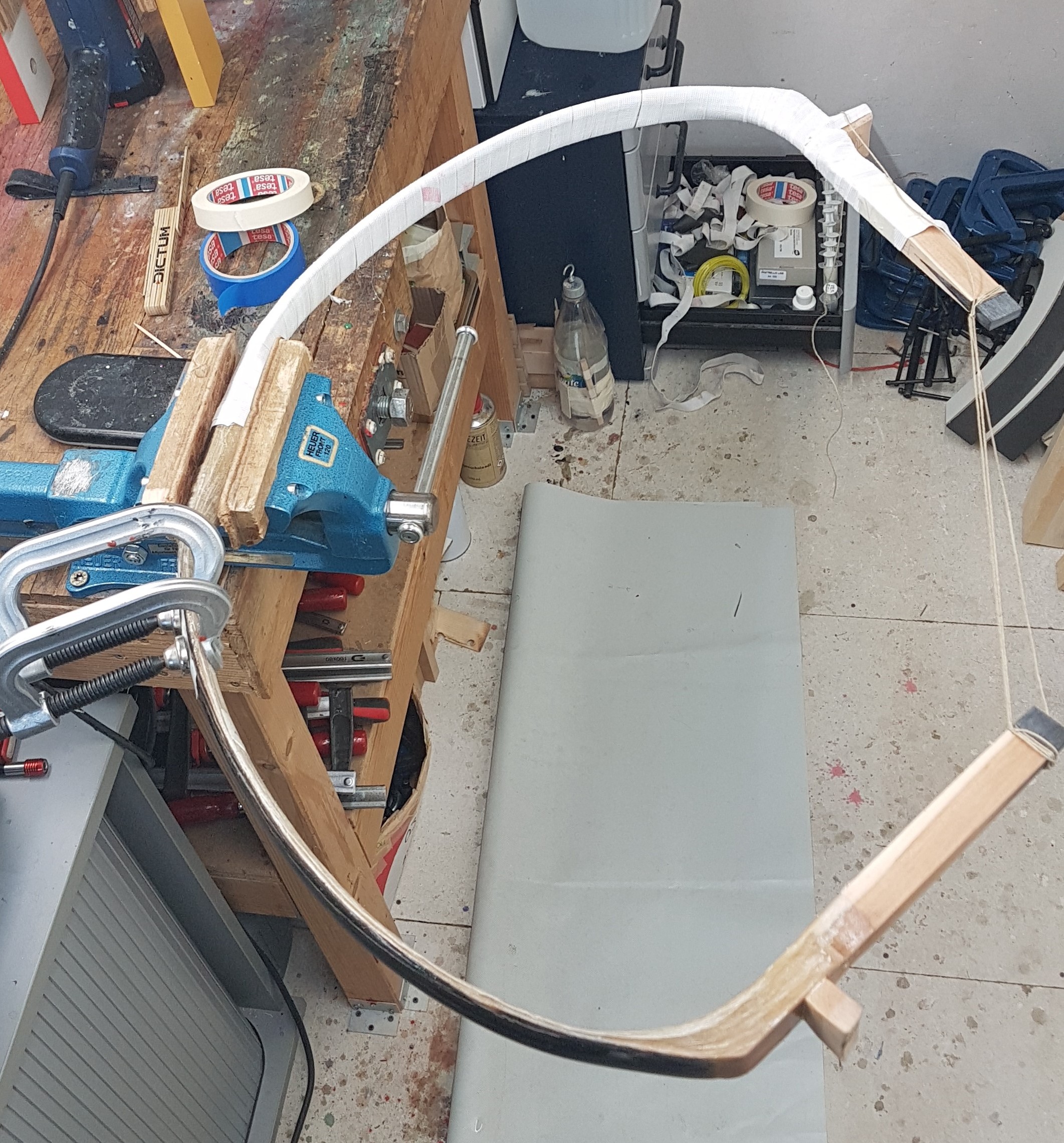 Weiter geht es mit dem nächsten Versuch den Bogen aufzuspannen, bzw. heute kam zunächst das einbinden dran.