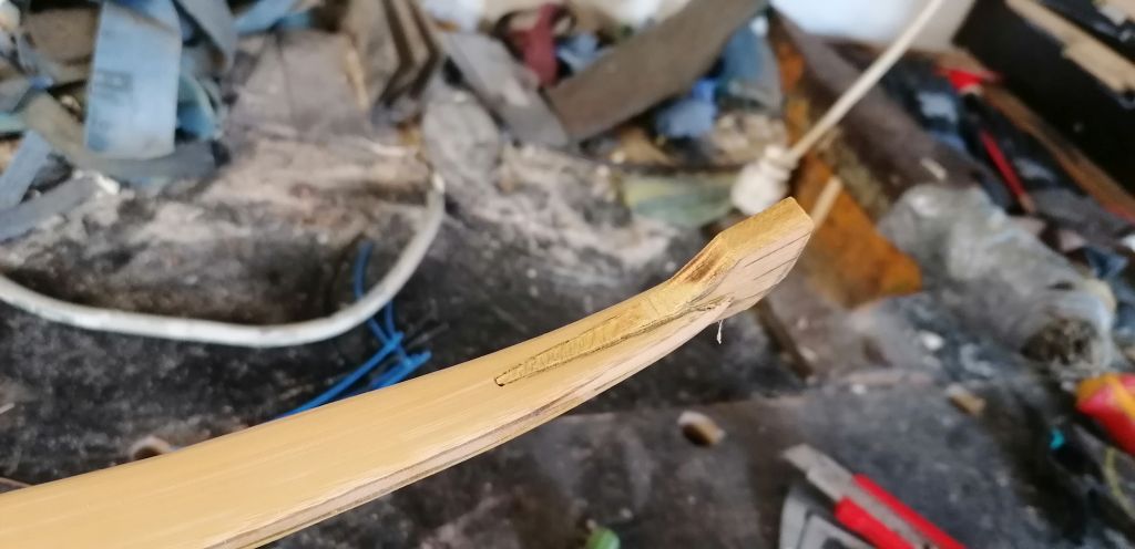 Auf die kleine Schwachstelle habe ich ein Pflaster aufgeklebt aus Osage. Danach hatte ich die Nocken ausgeformt und hatte es übertrieben....sie waren so schmal und leicht das bei Vollauszug weggebrochen sind