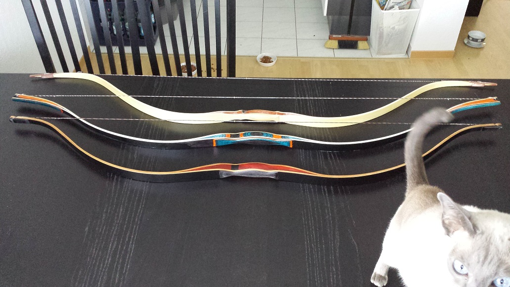 Vielen Dank, aber das sind nicht meine ersten Versuche mit Laminaten, das sind meine ersten Bögen und Designs überhaupt und jeder ohne Vorlage gebaut. Ursprünglich haben mir einige FC-ler so Dinge wie umschlagende WAs oder Brüche usw. prognostiziert. Der erste Bogen hat knapp 50.000 Schuss und lebt noch, nur zu schwach geworden, nach steigender Übung. Schieß nun auch erst seit Februar Bogen. Vor einer Woche hat mich mein Trainer aus dem Training entlassen, also ab nun im Training fürs erste Turnier, das aber noch nicht fest steht ::) .
