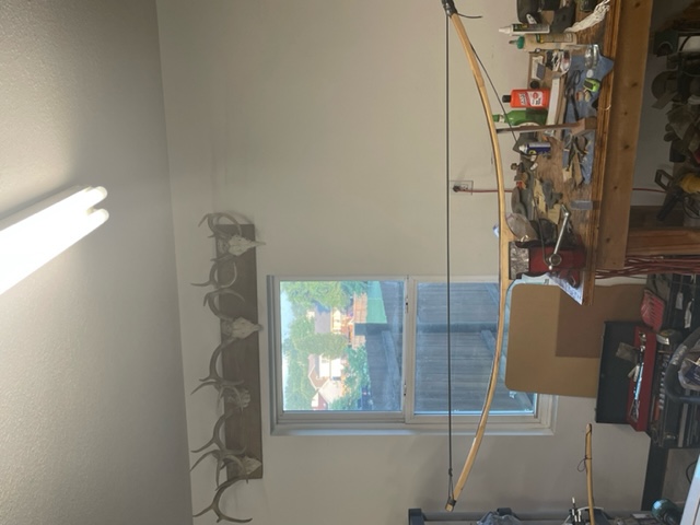 Heres a 60/40 lever bow profile out and getting legbone sinew backed from deer we harvested here at our home. Bow is currently drying for several months til sinew is totally dry.