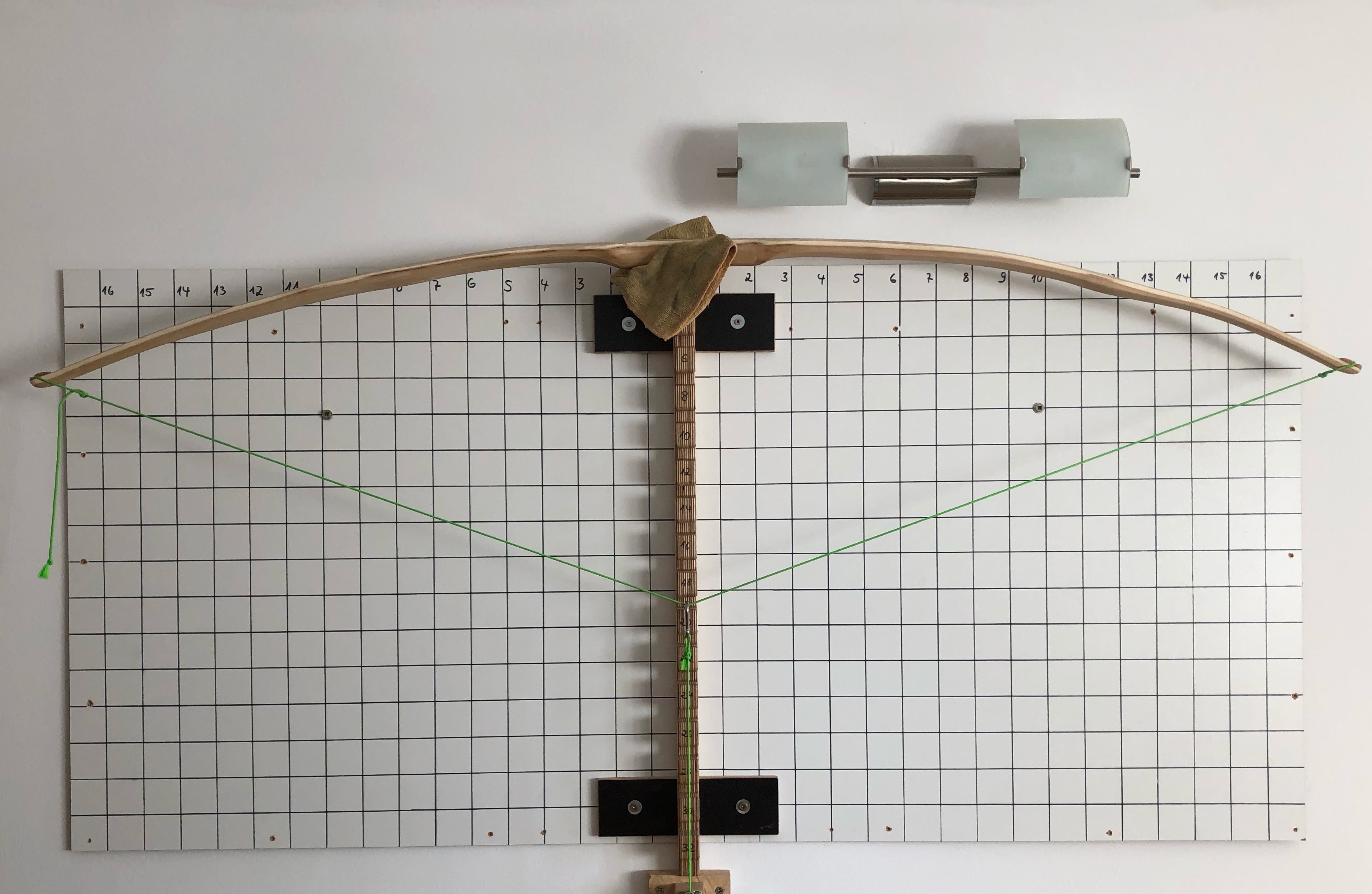 Die Fotos vom entspannten Bogen, vom Auszug bei 14 und 18"" mit bogenlanger Tillerschnur habe ich ebenfalls beigefügt.