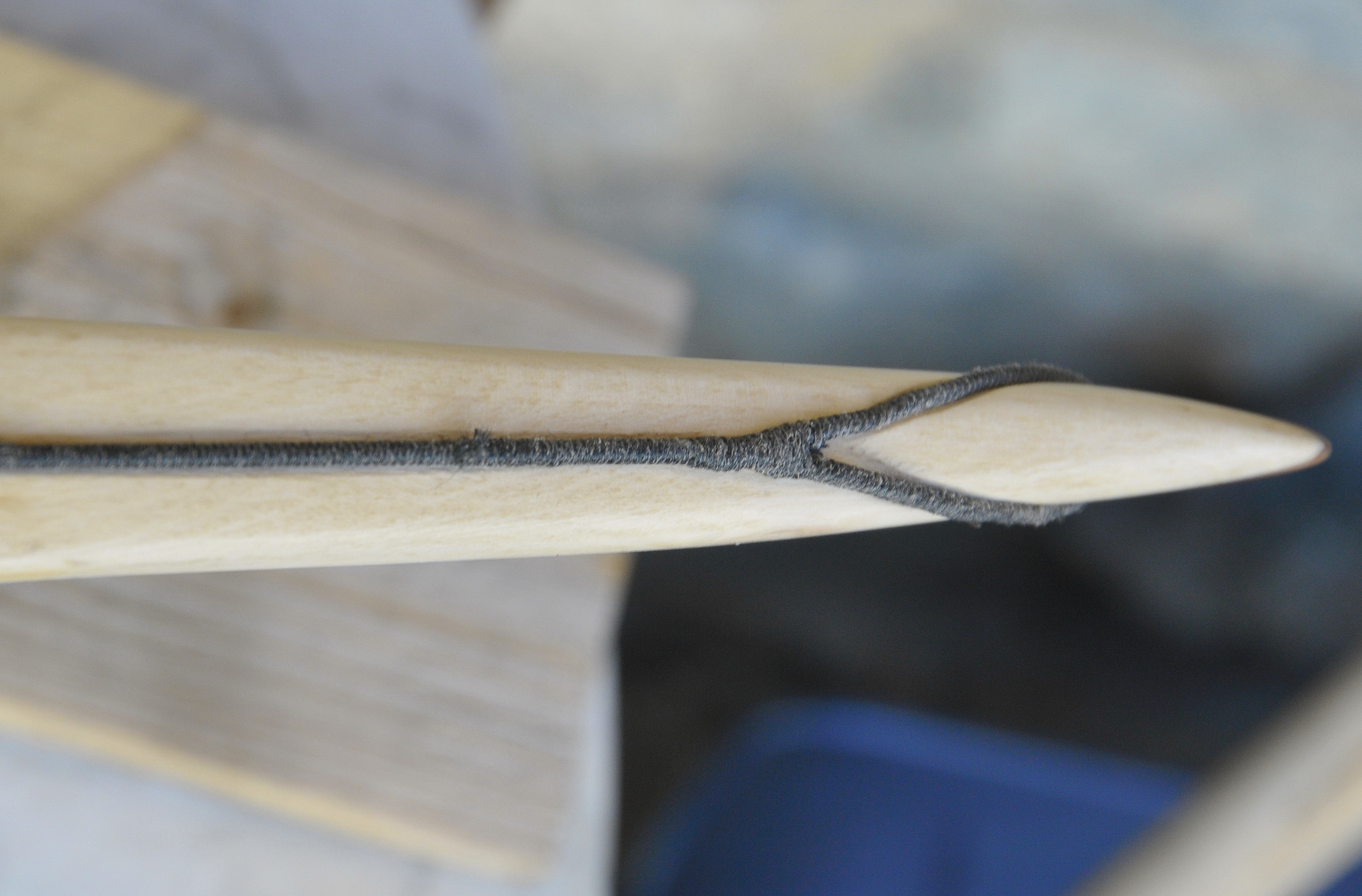 Die Geometrie der Tips, die sich durch das abhobeln der ersten Lage Hainbuche ergeben hat, ist ein tolles Detail
