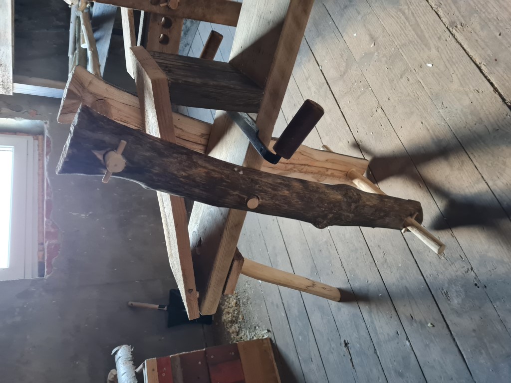 Ich weiß, dass es hier schon tolle Präsentationen von Hobelpferden gibt, aber ich lese auch immer mal wieder, dass manch einer eben keins hat, obwohl er gerne eins hätte. Nachdem ich jahrelang (sehr zufrieden) mit einem aus altem Bauholz und Multiplex zusammengeschraubten Modell gearbeitet habe, bin ich jetzt in eine Mittelalter-Truppe geraten, wo Schrauben etc. nicht in die Zeit passen. Also musste ein anderes her, das nun komplett mit Steckverbindungen auskommt. Ich war erstaunt, wie schnell und einfach das geht.