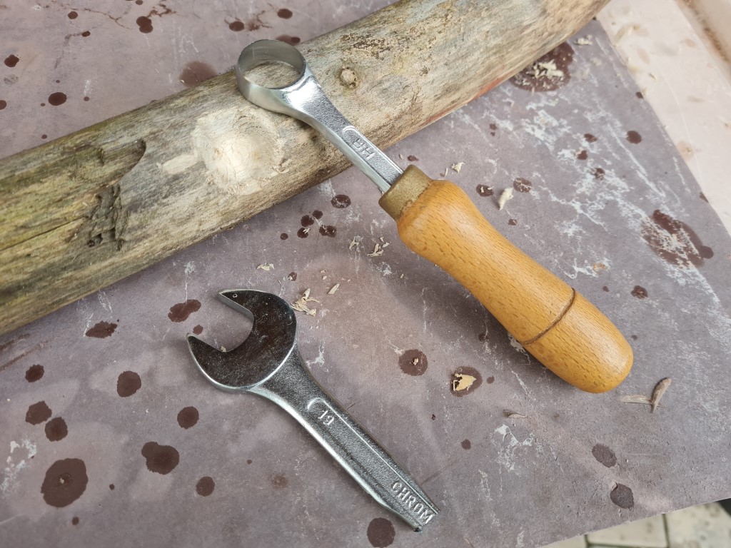 Hobelpferd aus Holzresten, Löffelmesser aus Ringschlüssel
