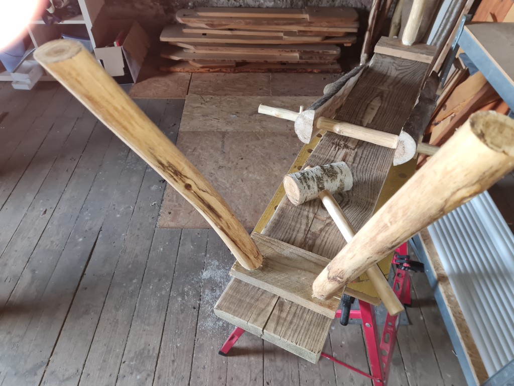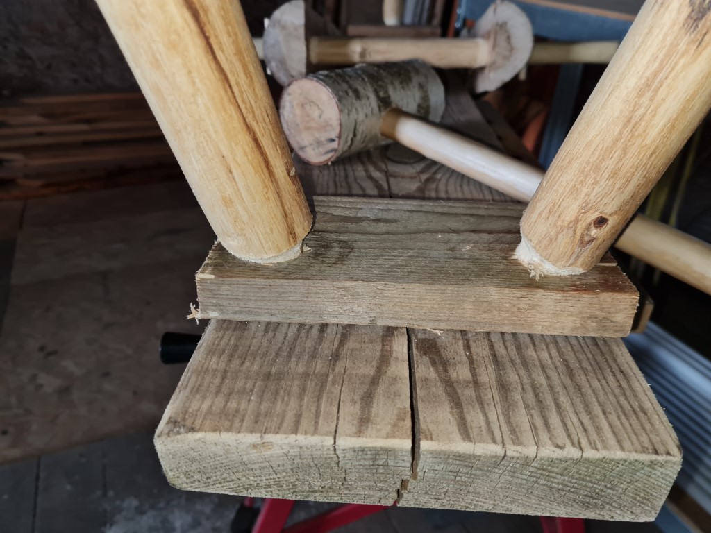 - ein paar (bogenungeeignete) Robinienstangen als Beine und Querstangen