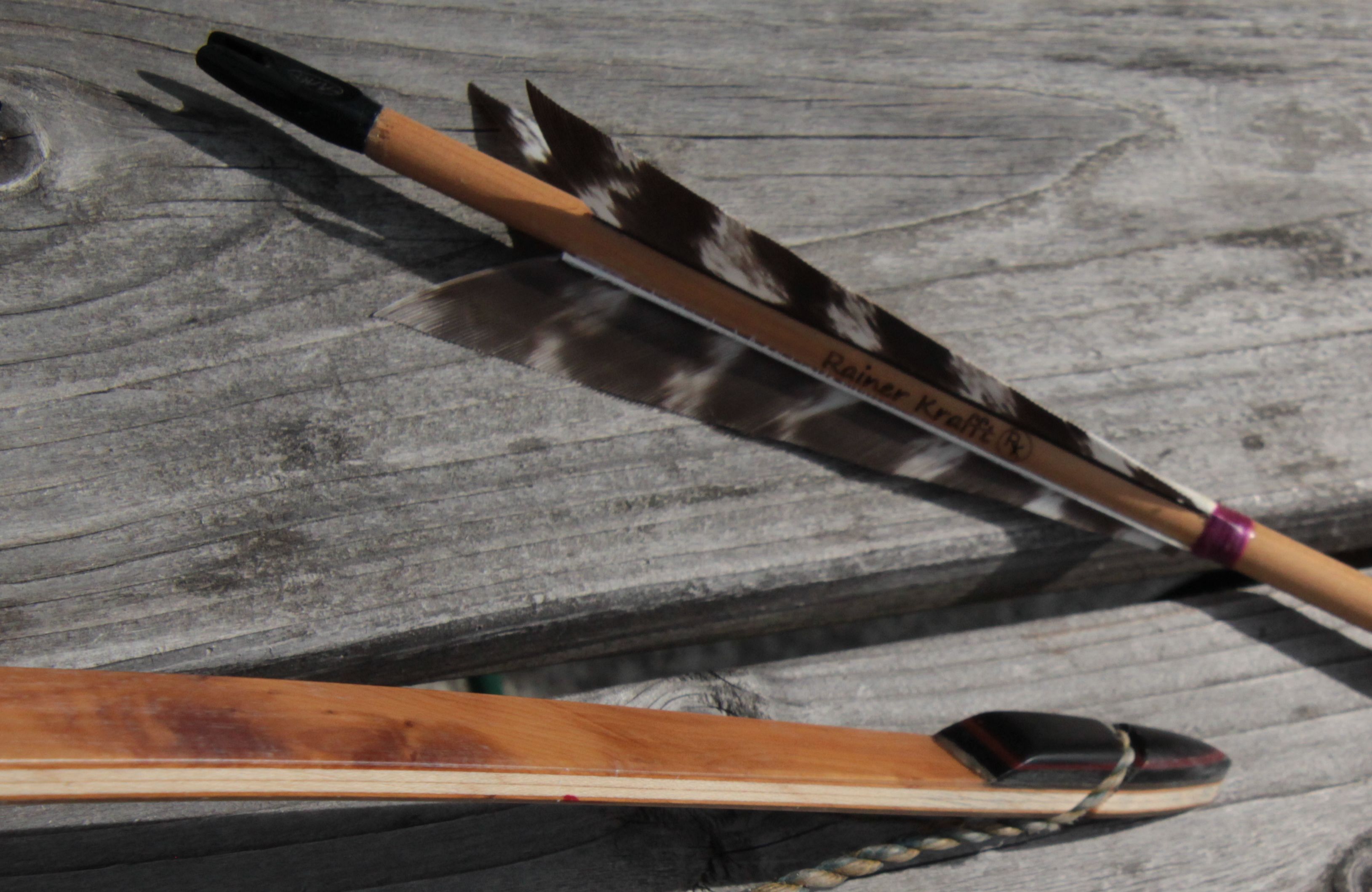 Der Bogen ist wieder aus der Form mit recht viel Recurve, wirft mit 700er Pfeilen auch auf den 50m Bison ganz gut.
