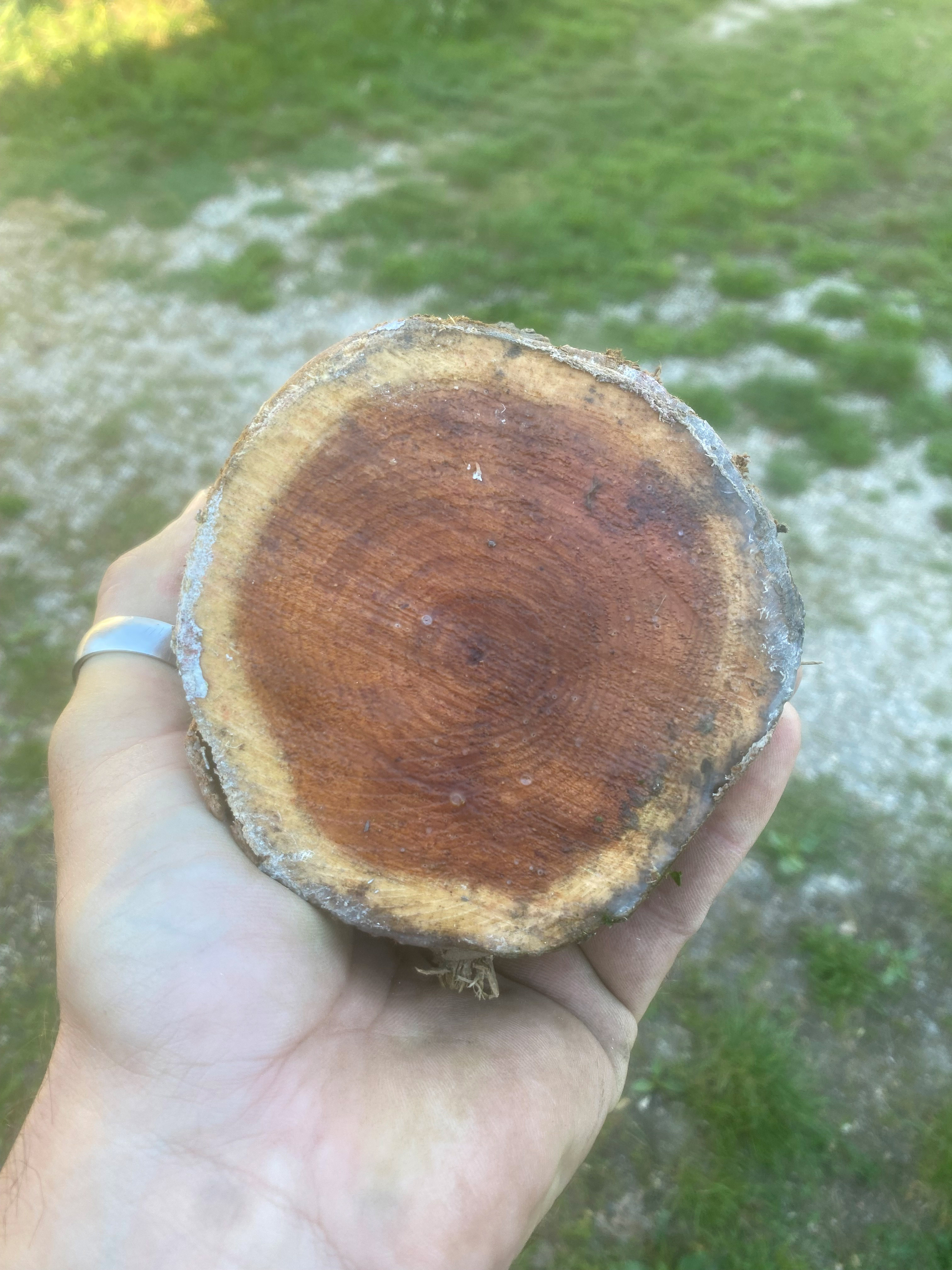 Durchmesser ist 11 Zentimeter auf der einen, 10 Zentimeter auf der anderen Seite. Sind nicht übertrieben aussagekräftig, die Fotos, ich weiß - hatte aber keine Zeit heute, die Enden abzuschneiden. Die Ringdichte sieht für mich deutlich besser als okay aus, die Farbe des Holzes auch.