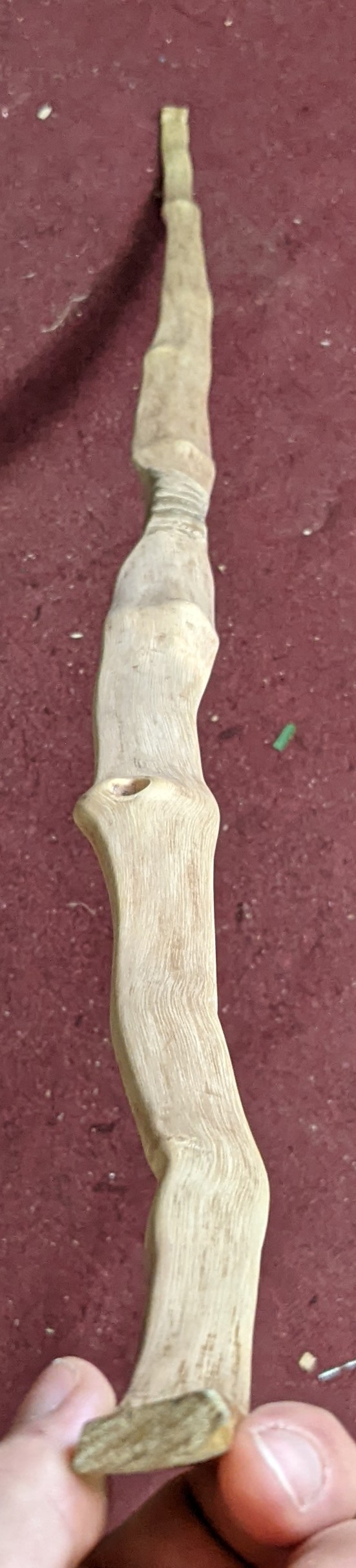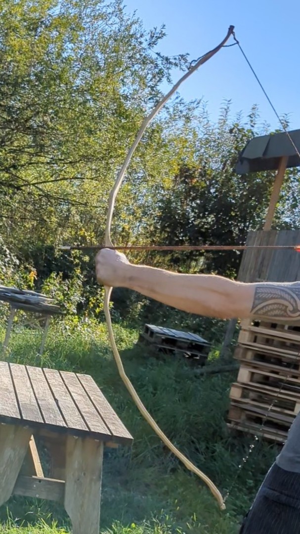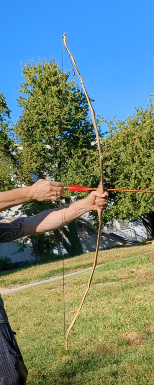 Interessantes Teil mit nur 2 Ringen. Auf dem vorletzten Foto sieht es so aus als ob der obere WA minimal steifer ist als der untere. Im Bereich erster Ast nach dem Griff bis zum 2. Astknubbel. Aber ist bei solch einem Charakterbogen schwer zu sagen.