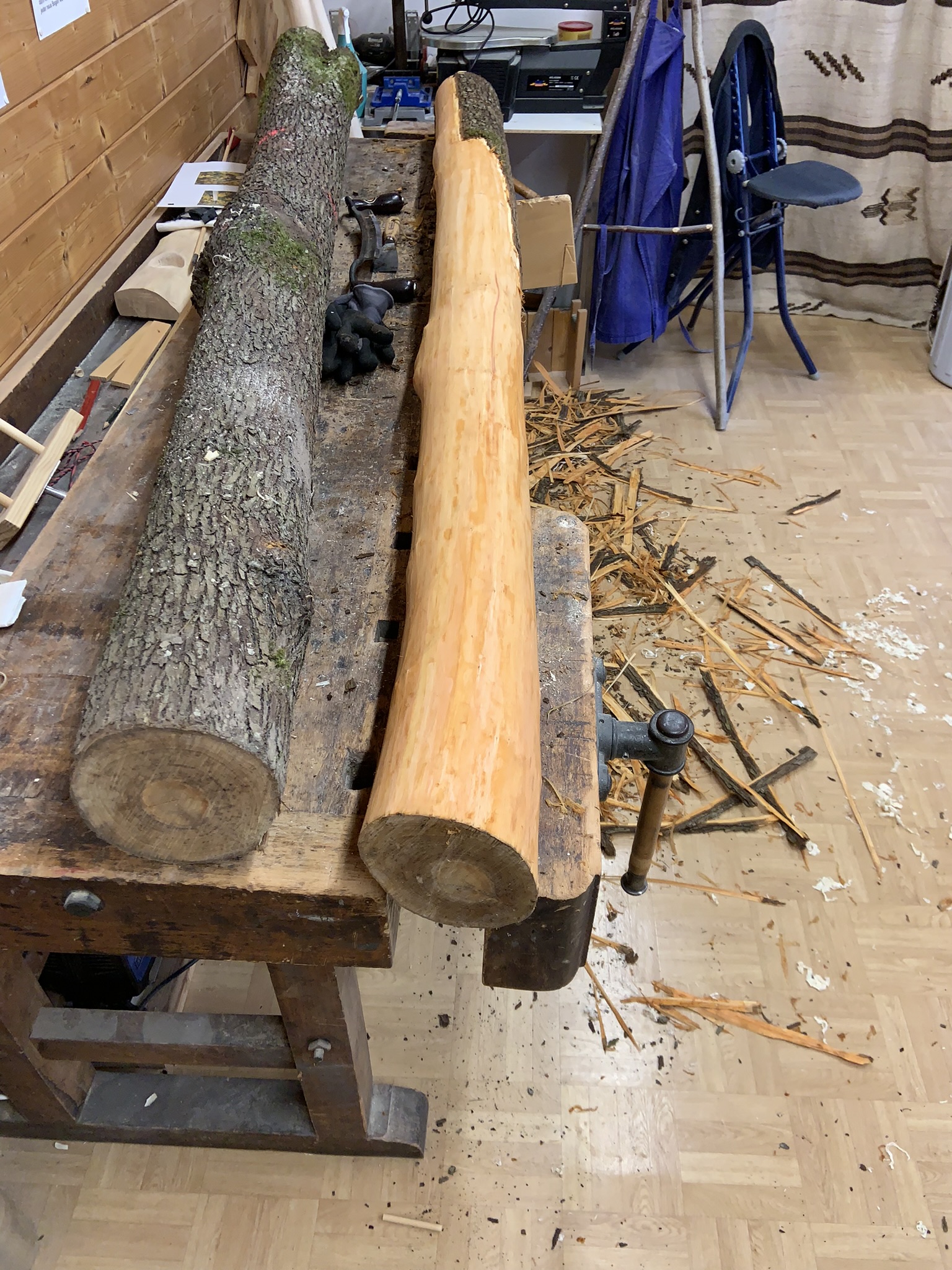 Also hab ich ausgeholfen und zum Dank den Stamm erhalten, ca. 25 cm Durchmesser.