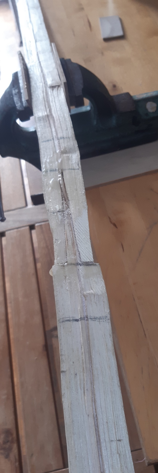 Und Spleiß mit biegendem Griff geht das? Vielleicht mache ich nach dem Sap mal nen Tread auf zum Thema Spleißen. Also das nächste mal den Spleiß auch erst sägen wenn das Holz getrocknet ist. Beim durchlesen verschiedener Treads hatte ich einen Hinweis gefunden wo stand das sich der Spleiß im feuchten Zustand besser aneinander anpasst. Was dazu geführt hat, das die sehnenlage wahrscheinlich nicht mehr stimmt. Und ja, ich hatte auch schon bedenken das er zu schmal ist mit 15mm am breiten Ende. Von wieviel Griffbreite geht ihr aus?