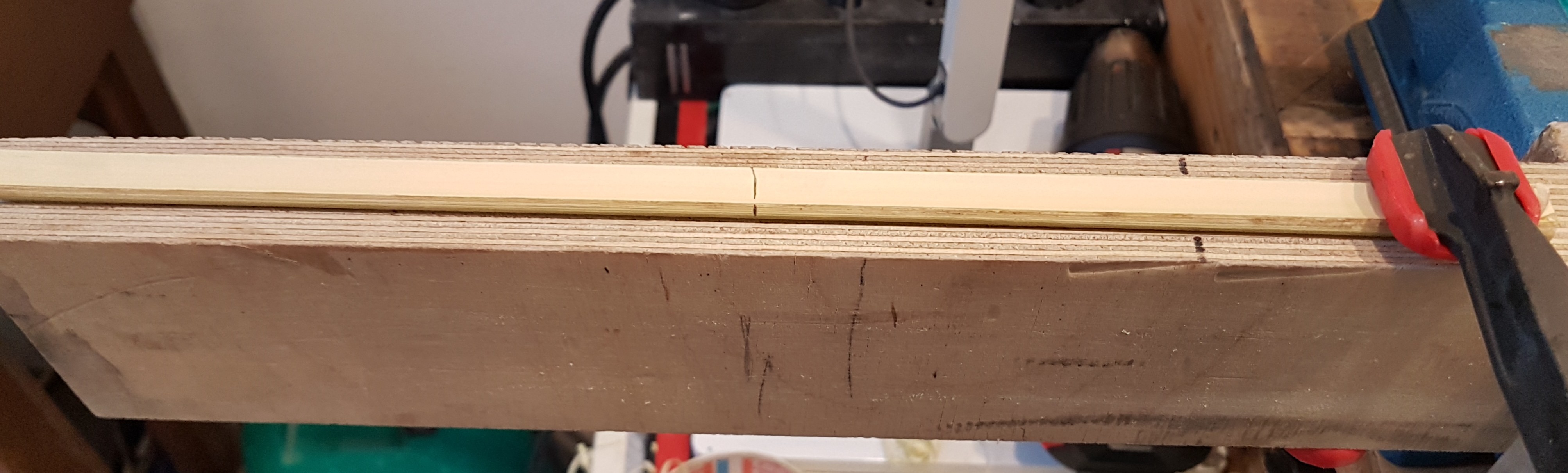 Die Bambusstreifen sind soweit fertig - gefällt mir zwar nicht so gut wie die ersten, aber so isses halt manchmal. Die 2. Bambus-Hälfte war nicht gerade, das heißt ich habe jetzt auch seitliche Wellen im Backing, die ich beim kleben zurecht rücken muss und zusätzlich wird die Mittelfuge breiter werden.