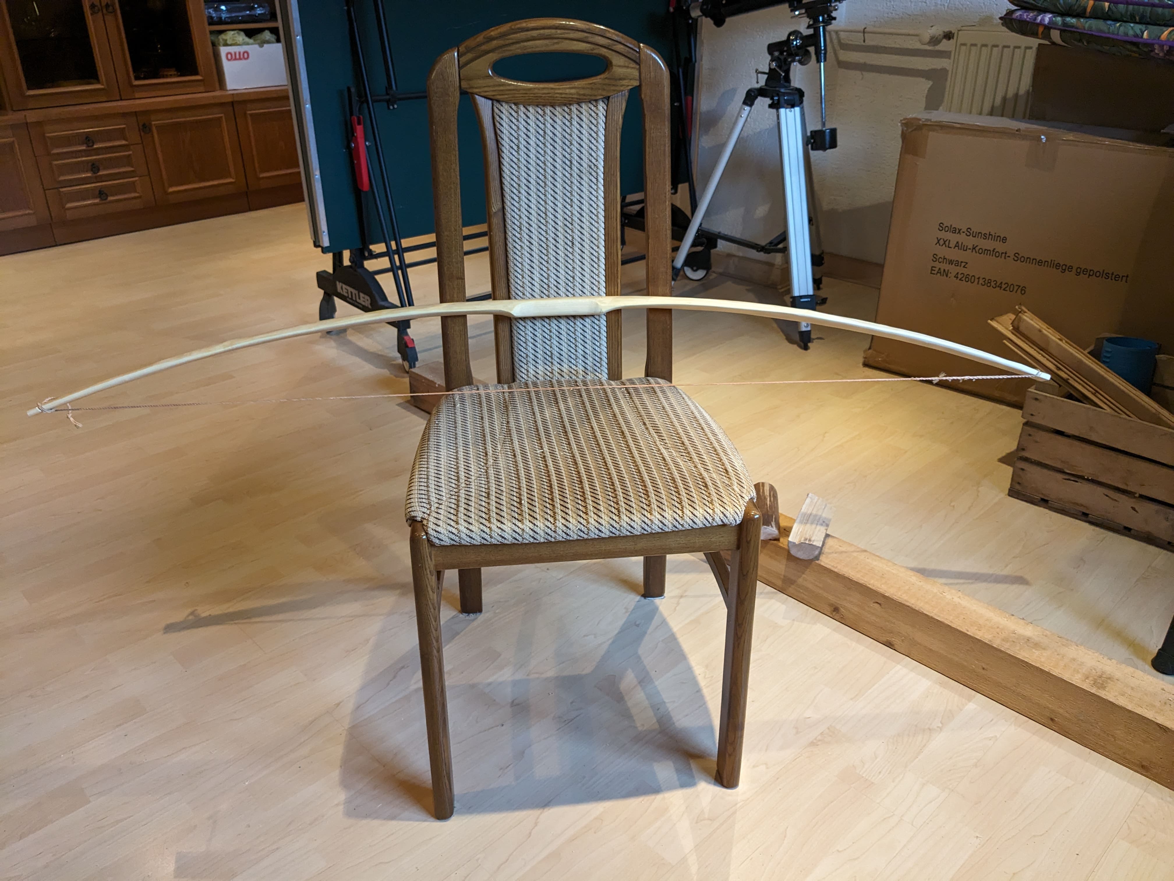 Da sich das drohende Untergewicht schon abzeichnete, habe den Bogen gekürzt. An beiden Enden wurden 8 cm abgenommen, sodass ich jetzt bei einer Bogenlänge von 153 cm N/N bin.