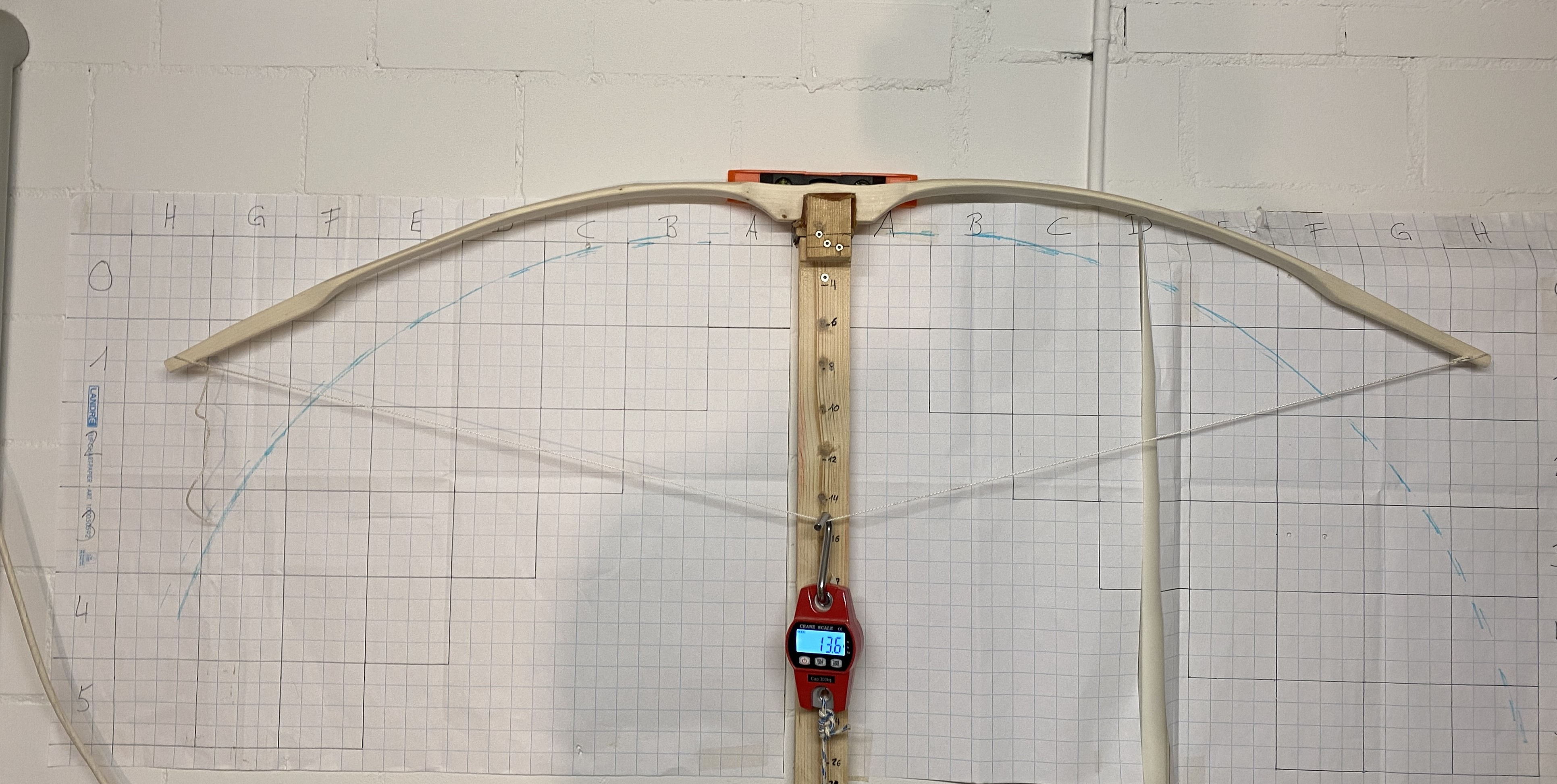 Rechter Wurfarm: Schwachstelle bei B3/4, C biegt im Verhältnis zu D und E zu wenig.